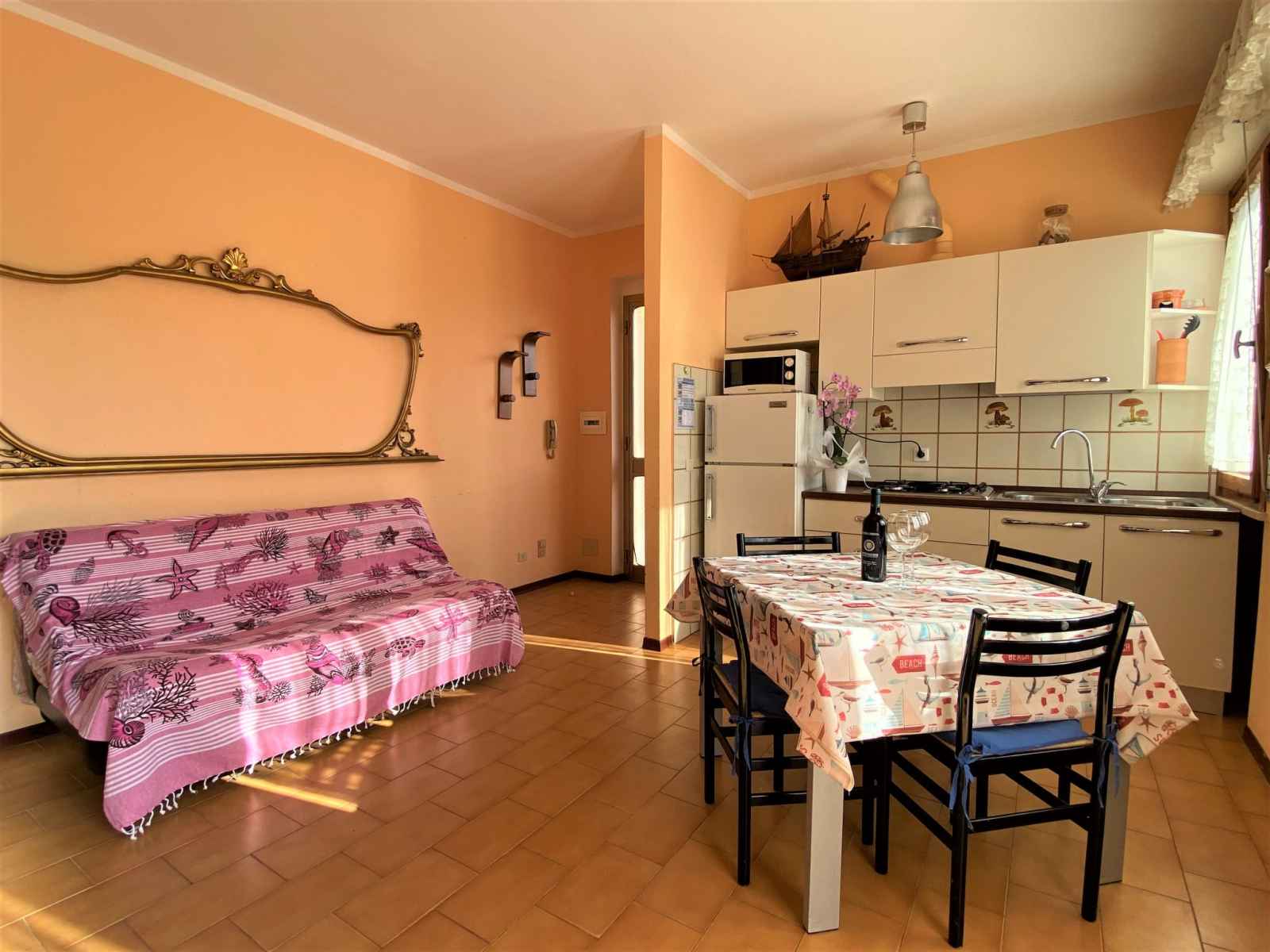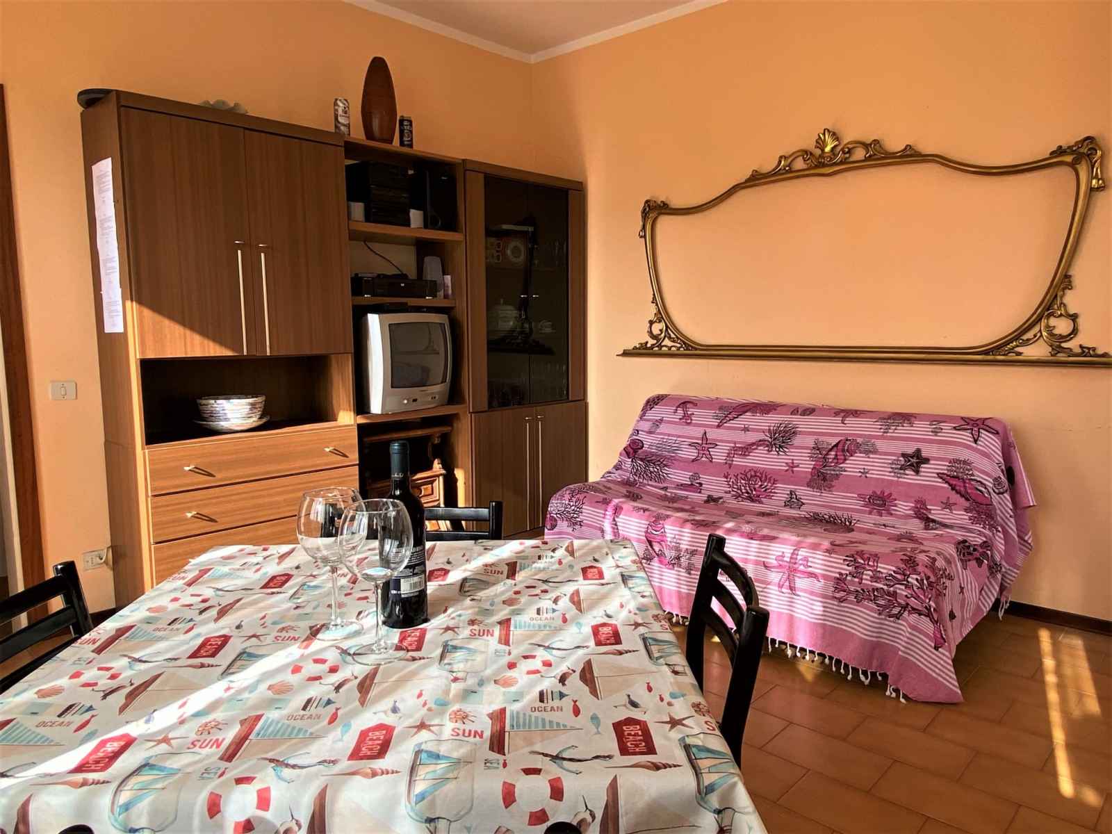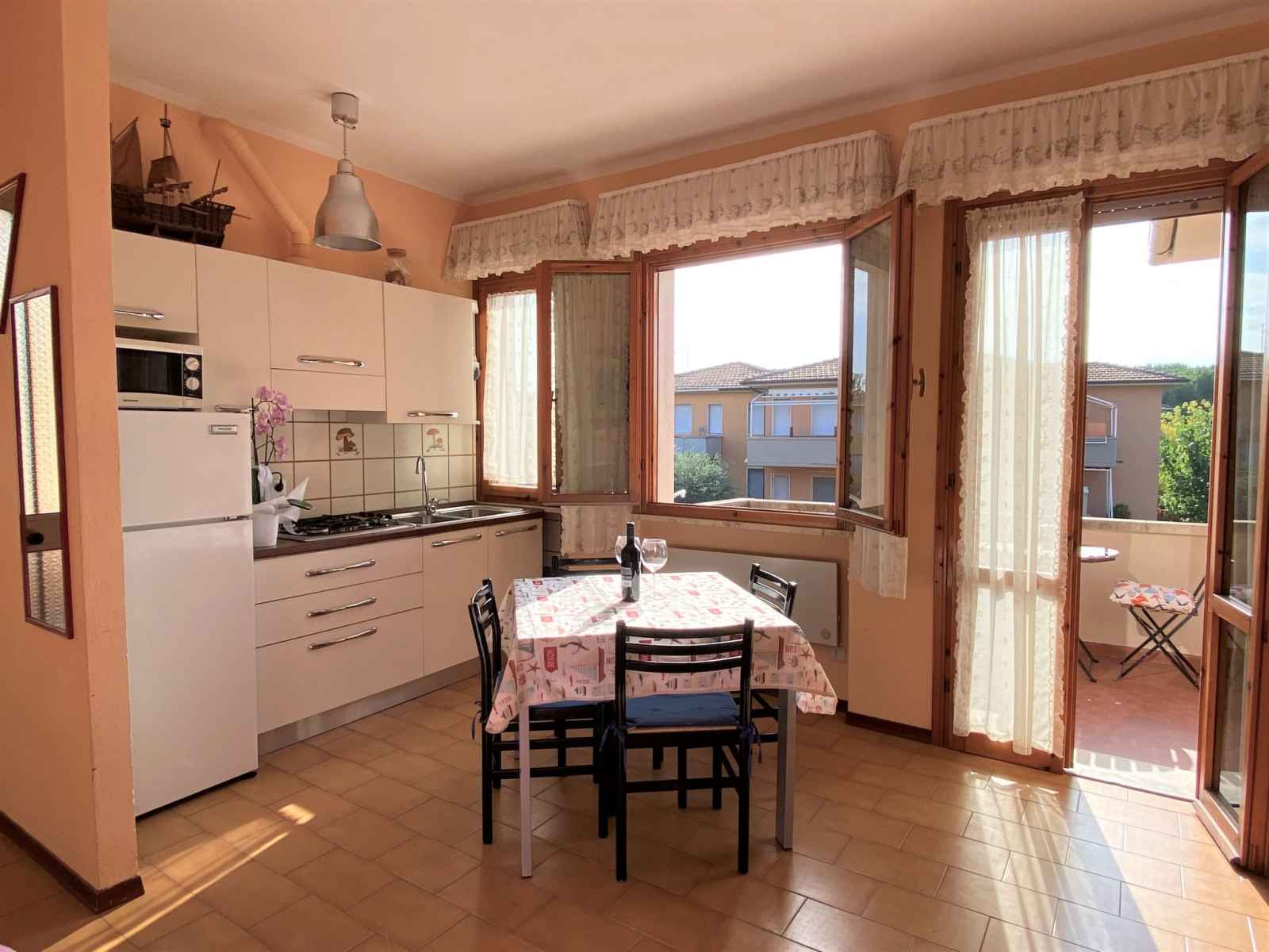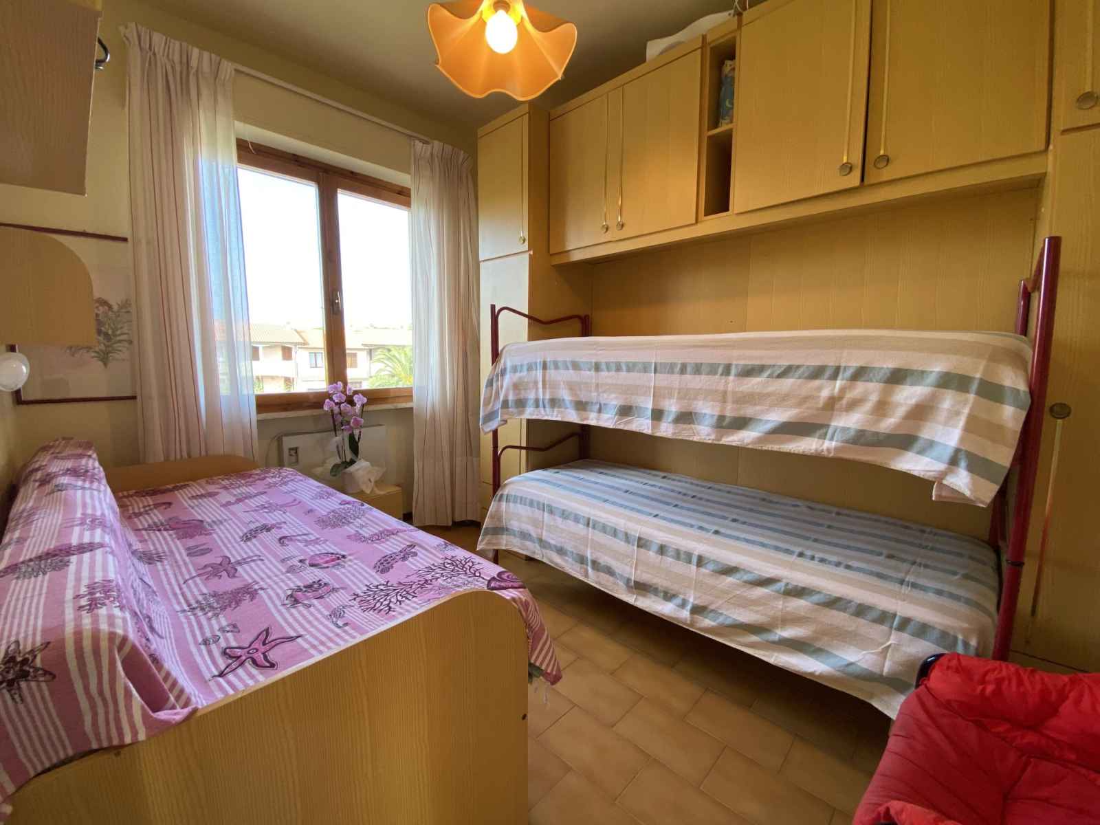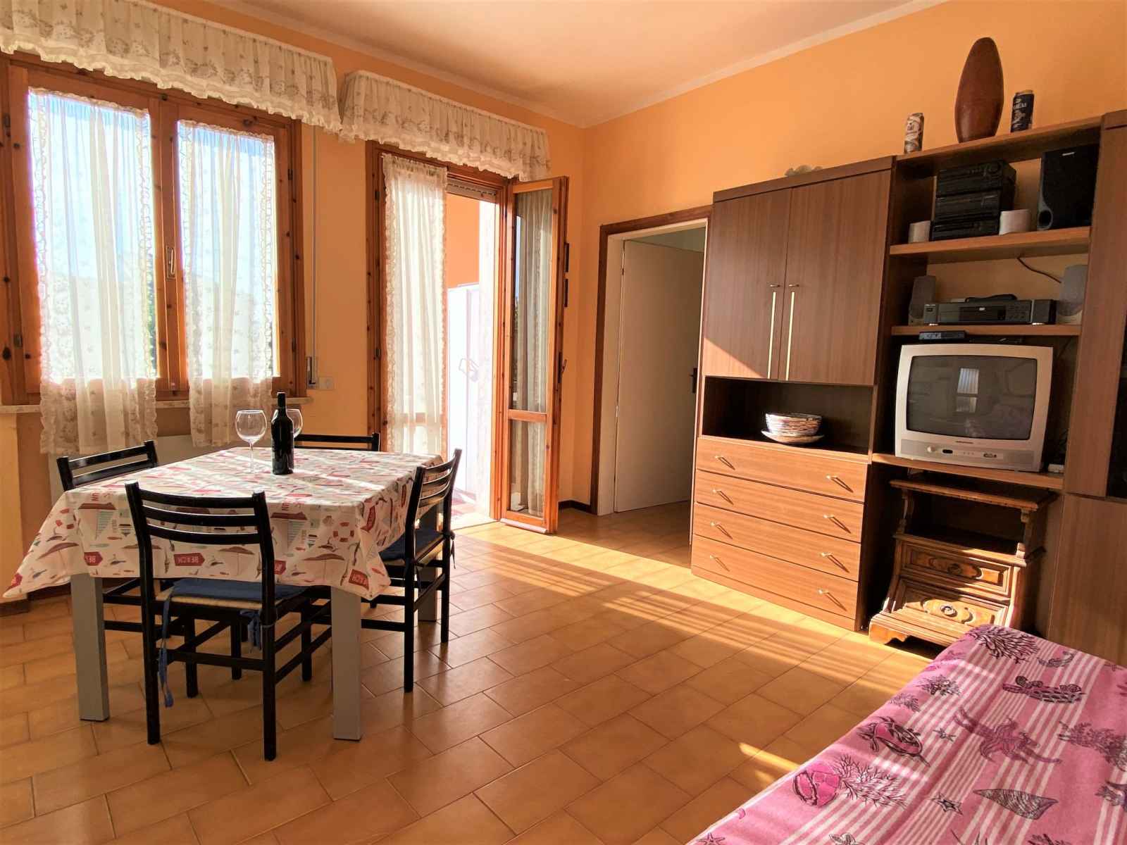 "palazzeta iii", apt 3 pièces 45 m2. aménagement fonctionnel: séjour/salle à manger avec table pour les repas et tv (satellite). sortie sur le balcon. 1 chambre double avec 1 lit double. 1 chambre avec 1 lit et 1 x 2 lits superposés. cuisine ouverte (four, 4 feux). douche/bidet/wc. pas de chauffage. balcon. a disposition: lit bébé jusqu'à