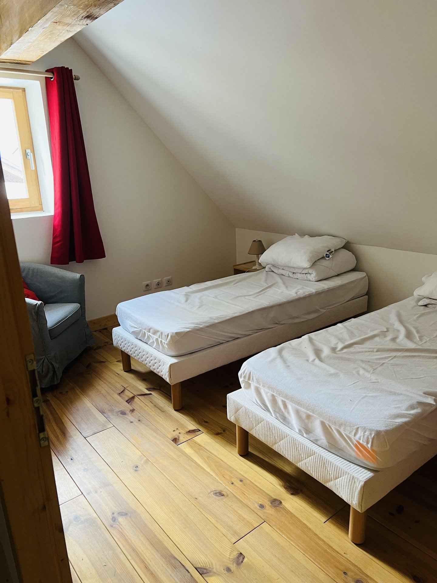mezzanine ouverte (niv +2/ 8m²/ ouest) : 2 lits simples (2x 90x200cm/ ne peuvent pas être accolés)
