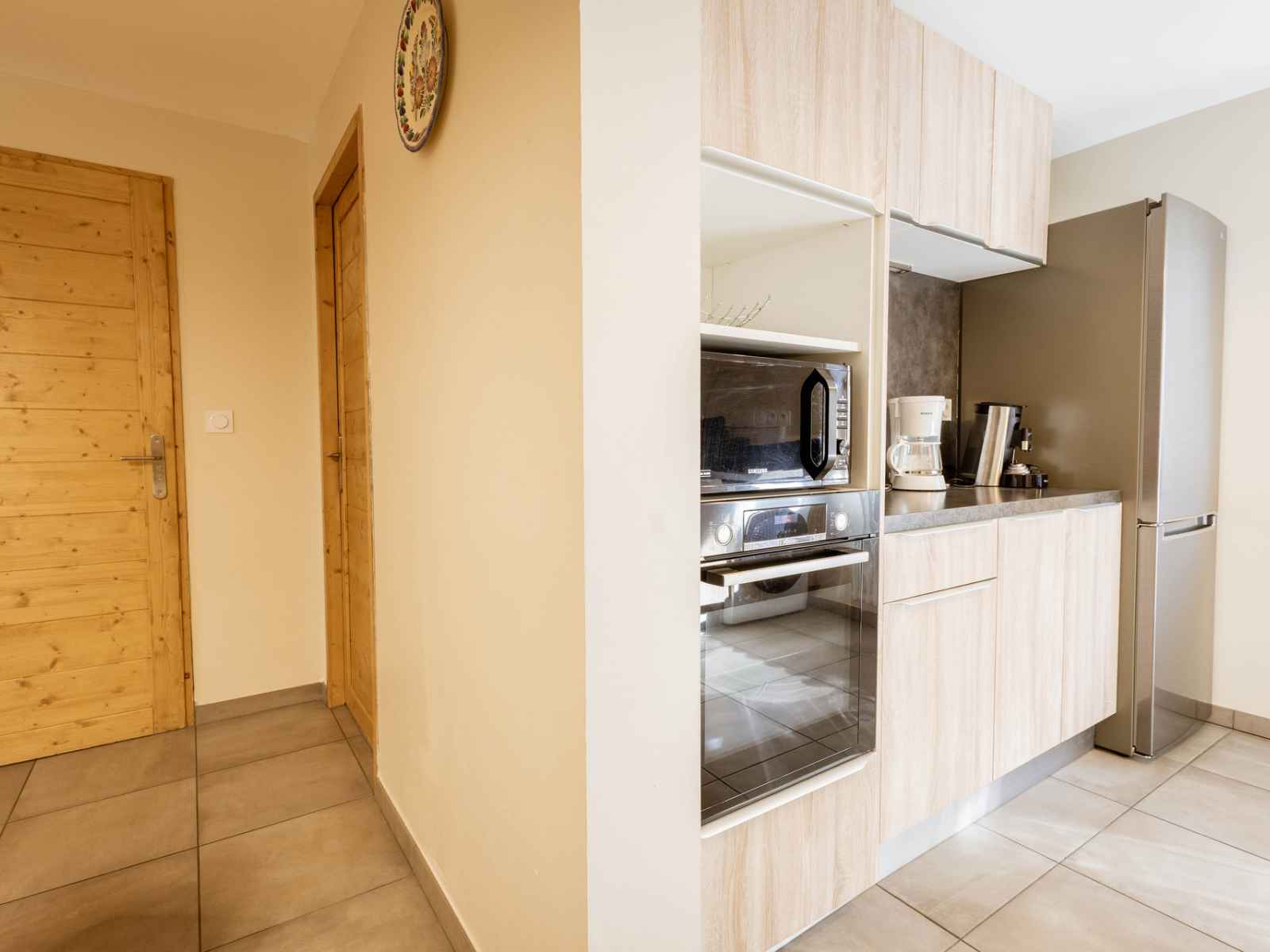 - coin cuisine : four, micro-ondes, lave-vaisselle, réfrigérateur avec partie congélateur,