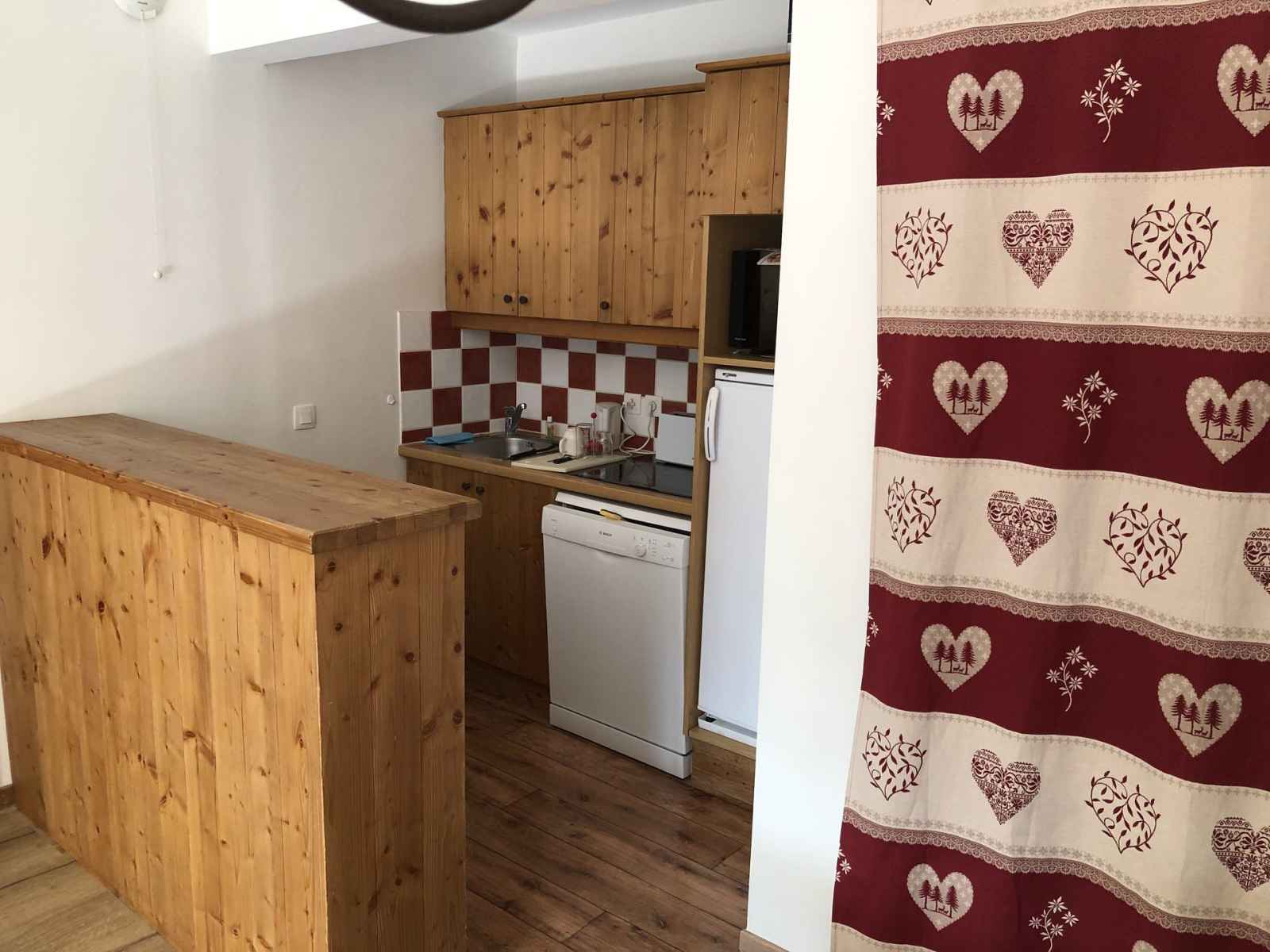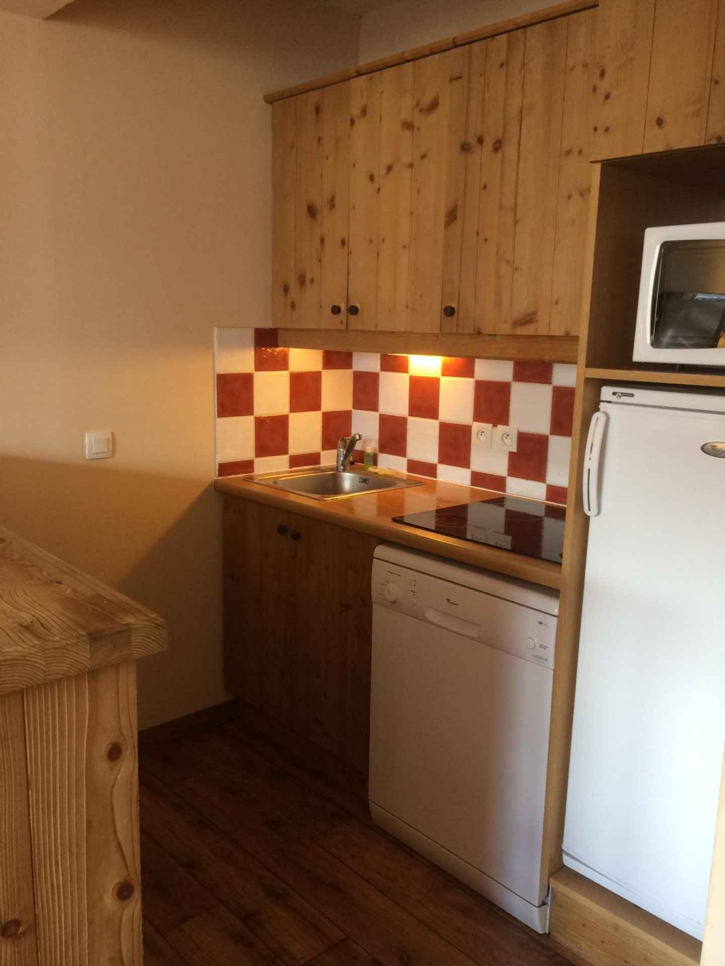 - coin cuisine : four micro-ondes/grill, lave-vaisselle, réfrigérateur, plaque induction (4 foyers).