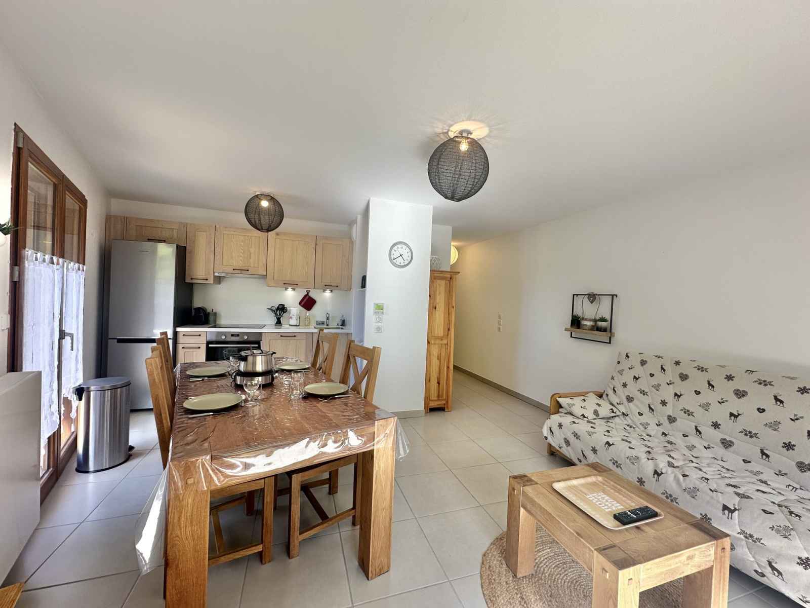 (Un couchage simple en hauteur vient compléter les autres lits, idéal pour un enfant (6ans min)) Un canapé convertible dans le salon. Deux salles d'eau ainsi qu'un WC séparé. Équipements : Un frigo avec congélateur, des plaques à induction, grille-pain, lave-vaisselle, lave-linge, four traditionnel, four micro-ondes, bouilloire, aspirateur rebot, seche-cheveux. Cafetière Nespresso, appareil à raclette et appareil à fondue. Atouts de l'appartement: une place de garage, pied du télésiège, jardin et terrasse ! Ménage de fin de séjour non compris et linge de maison en option (Pack draps et serviettes 16€/personne), nous consulter. Animaux interdits. Toutes nos locations sont strictement NON-FUMEUR.