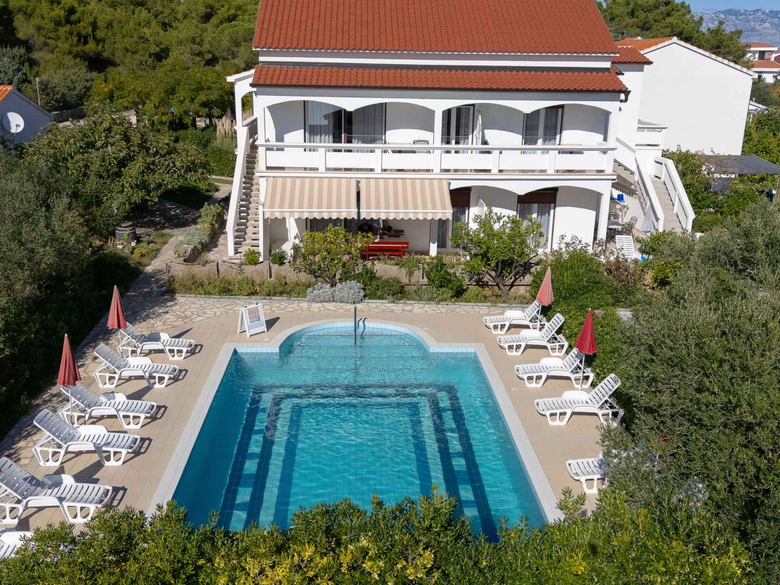 Bel immeuble accueillant "vesela". en-dehors de la localité, à 1 km du centre de vir, situation ensoleillée, à 400 m de la mer, à 400 m de la plage, dans la verdure. en commun: jardin avec plantes et arbres, verger, piscine rectangulaire (10 x 6 m, profondeur 150 - 170 cm, disponibilité saisonnière: 04.mai. - 14.sep.) avec marches
