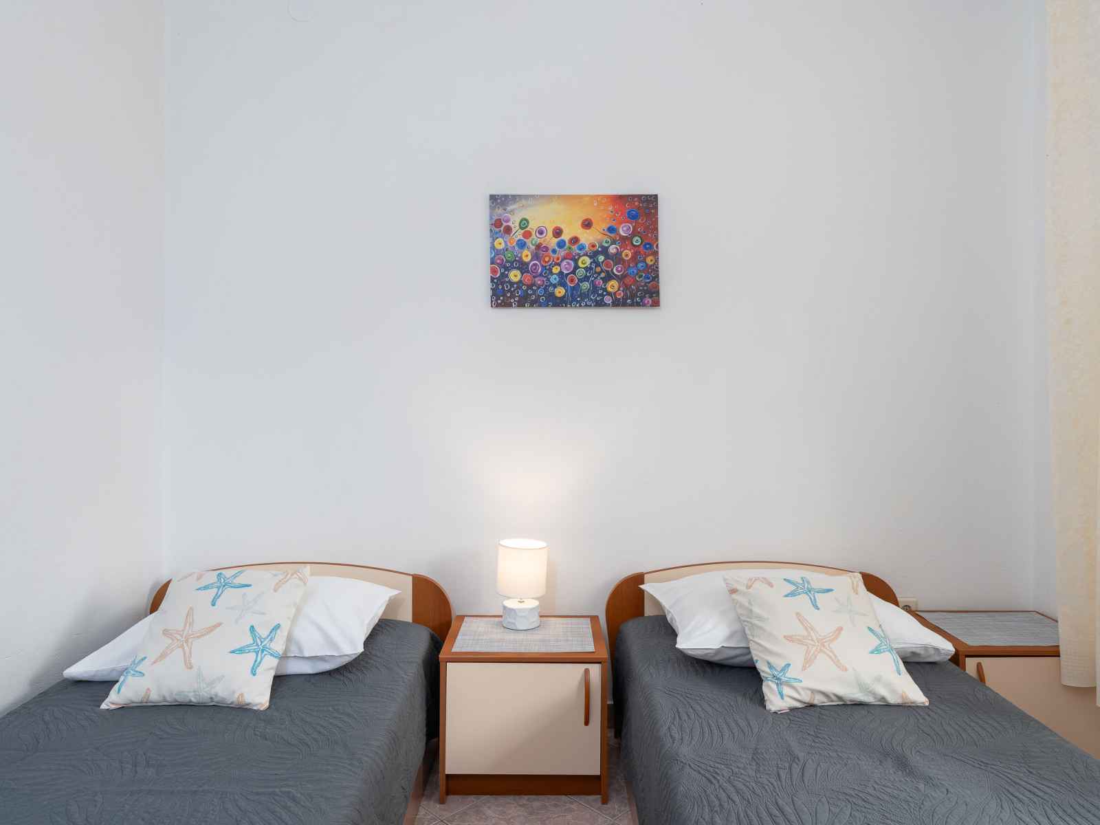 Bel immeuble accueillant "vesela". en-dehors de la localité, à 1 km du centre de vir, situation ensoleillée, à 400 m de la mer, à 400 m de la plage, dans la verdure. en commun: jardin avec plantes et arbres, verger, piscine rectangulaire (10 x 6 m, profondeur 150 - 170 cm, disponibilité saisonnière: 04.mai. - 14.sep.) avec marches