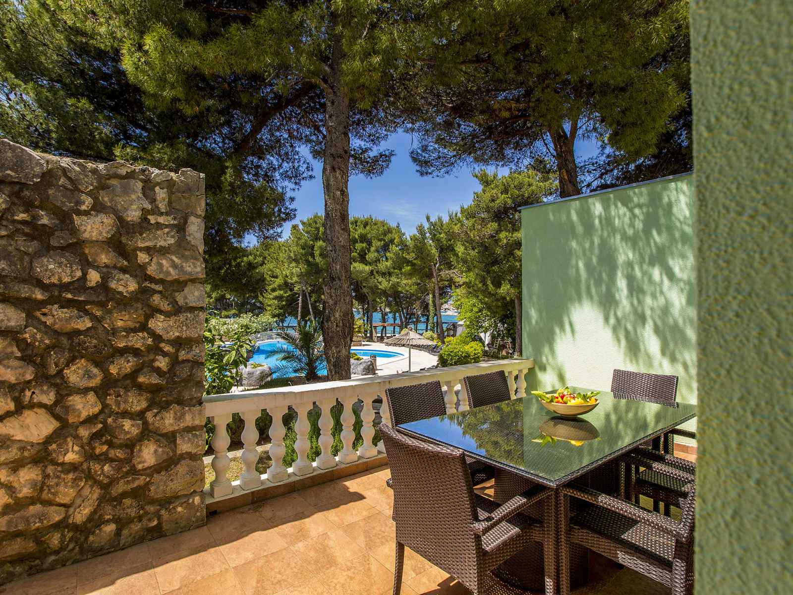 Complexe de vacances accueillant pour les enfants, accueillant "matilde beach resort", environné par les arbres. À 300 m du centre de vodice, situation ensoleillée, juste au bord de la mer, juste au bord de la plage. en commun: terrain (clôturé) avec arbres, piscine (200 m2, profondeur 125 cm, disponibilité saisonnière: 15.mai. - 30.sep.)