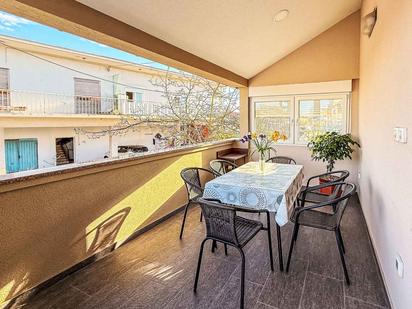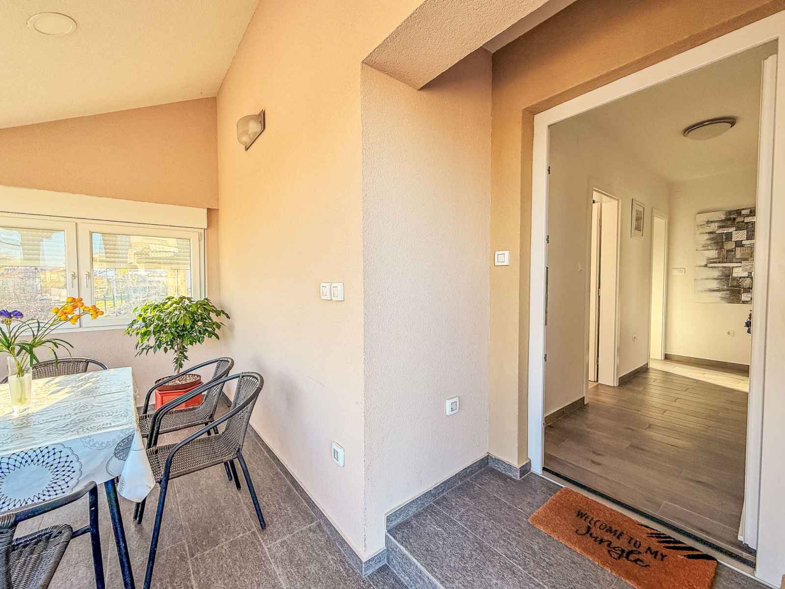 500 m, arrêt de bus 400 m, plage de graviers 4 km, plage bétonnée 4 km. tennis 3.5 km, piste cyclable 3.5 km. veuillez noter: aéroport 12 km de la maison.