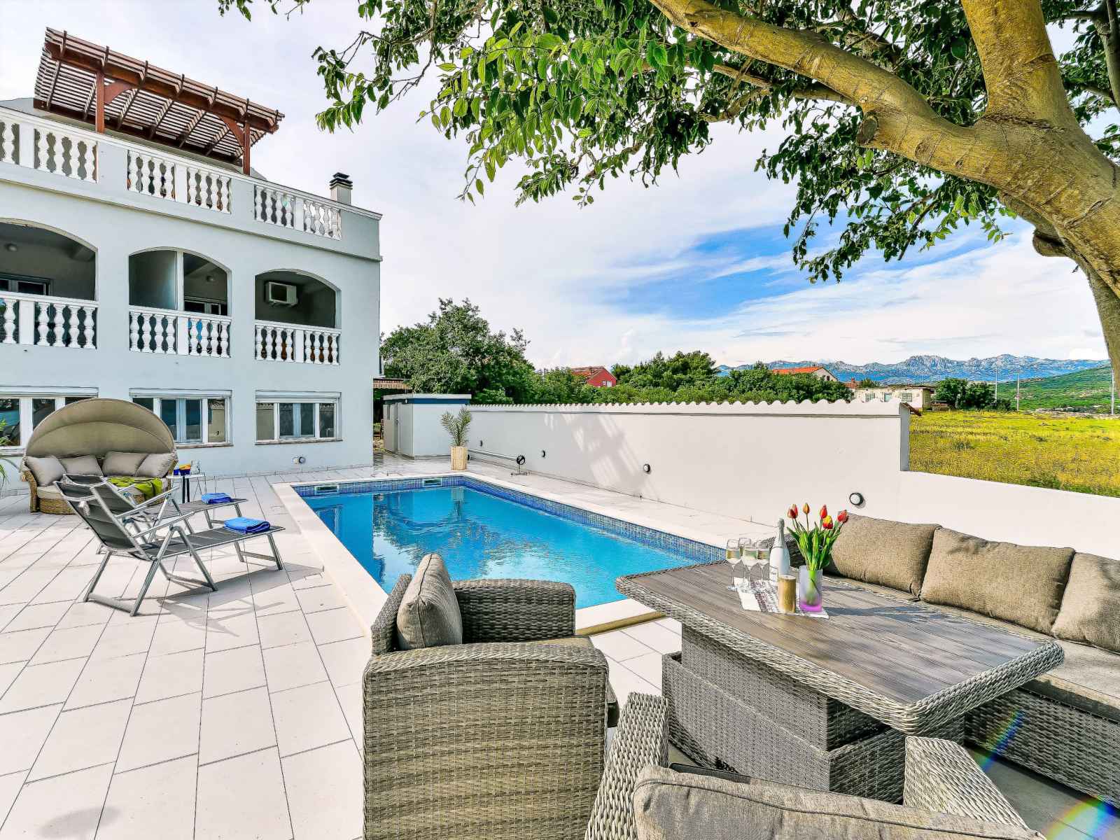 Immeuble "valentina". À 35 km du centre de zadar, en bordure de la localité, à 2 km du centre de pridraga, à 6 km du centre de novigrad, à 25 m de la mer, à 25 m de la plage. en commun: terrain 700 m2 (clôturé) avec arbres, piscine rectangulaire (8 x 4 m, profondeur 150 cm, disponibilité saisonnière: 20.mai. - 25.sep.) avec marches