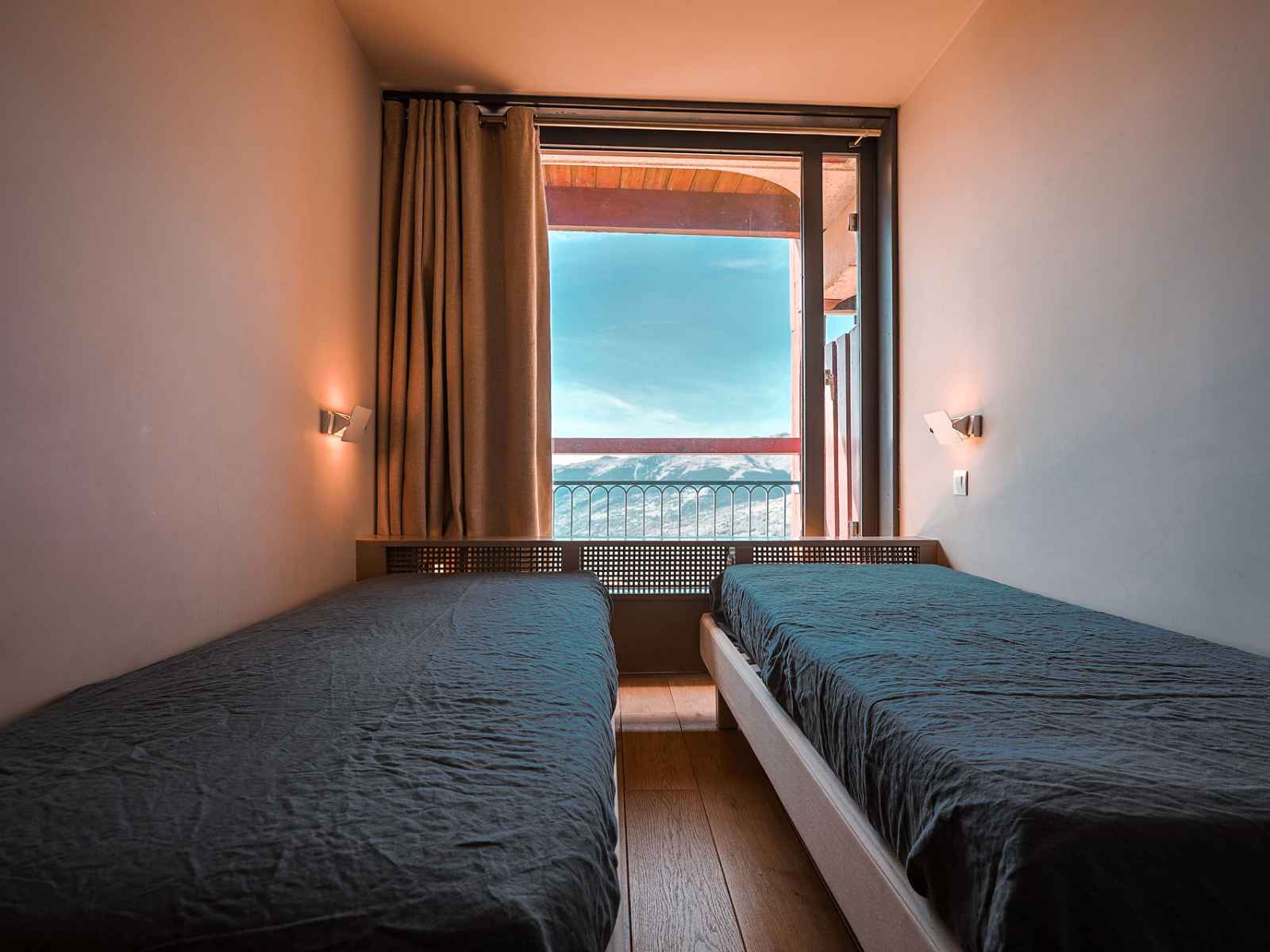 situé au 5ème étage de la résidence Nova 4, résidence avec ascenseur. Les couchages Ils se situent à l'étage inférieur de l'appartement. Vous trouverez un coin montagne avec un ensemble de 4 lits superposés, et également deux chambres avec chacune 2 lits jumeaux en 90. Merci de noter que le couchage en hauteur ne convient pas à des enfants de moins de 6 ans. Les sanitaires A votre disposition, une salle de bains avec une baignoire et une salle de douche avec un WC à l'étage inférieur, ainsi qu'un WC supplémentaire à l'étage supérieur. La cuisine ouverte sur le séjour Elle est entièrement équipée d’un four, d'un réfrigérateur, d'un lave-vaisselle, d'un grille-pain, d'une bouilloire, d'une cafetière et d'un micro-onde. Les équipements complémentaires Une télévision dans le séjour. L’accès Wifi Un lave-linge. Informations supplémentaires Les disjoncteurs sont au niveau -1. Nos amis les animaux ne sont pas tolérés dans l'appartement. Possibilité de louer une place dans le parking de la résidence. Appartement équipé de couettes. Linge de lit et de toilette inclus (sauf l'été et courts séjours) Appartement non fumeur.