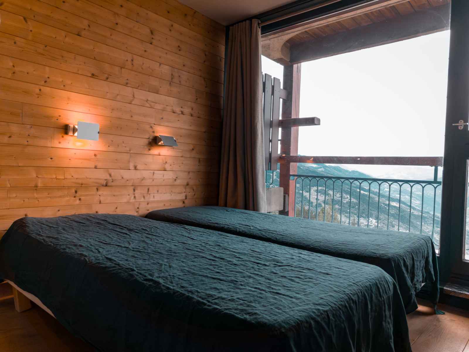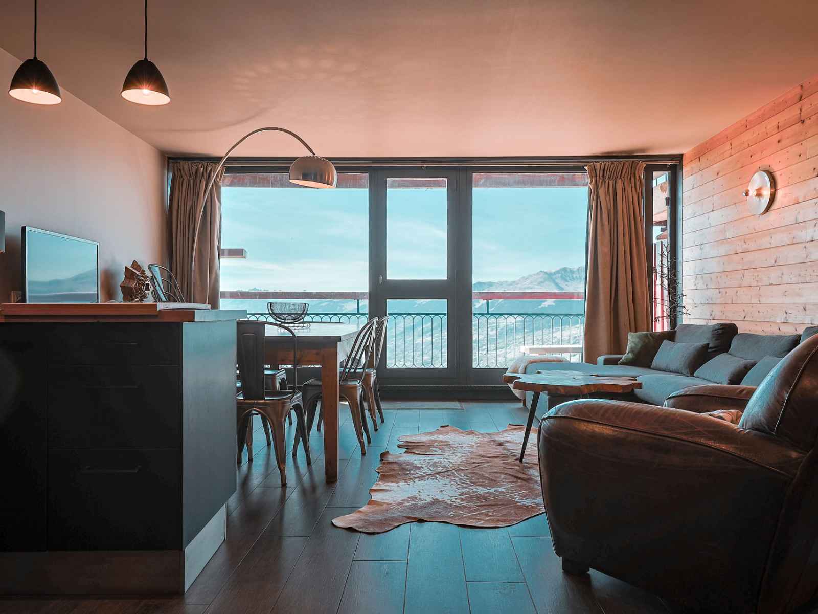pour vos vacances au ski ou vos vacances d'été aux arcs 1800, réservez ce très bel appartement 4 pièces sur 2 étages, qui bénéficie de deux balcons exposés sud-ouest avec une vue plongeante sur la vallée.