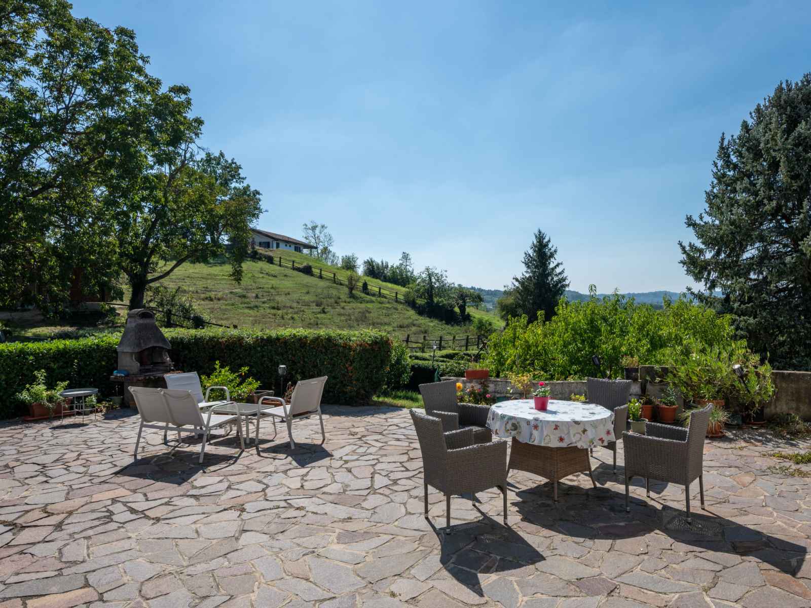 Belle maison de campagne "villa bricchetto", environnée par les prés et vignobles. 2 appartements dans la résidence. À 4 km du centre d'asti, à 3 km du centre d'azzano d'asti, à 25 km du centre d'alba, situation ensoleillée sur un versant. en commun: terrain 4'000 m2 (clôturé) avec arbres, jardin naturel, champ, pré, piscine (13 x 6 m,