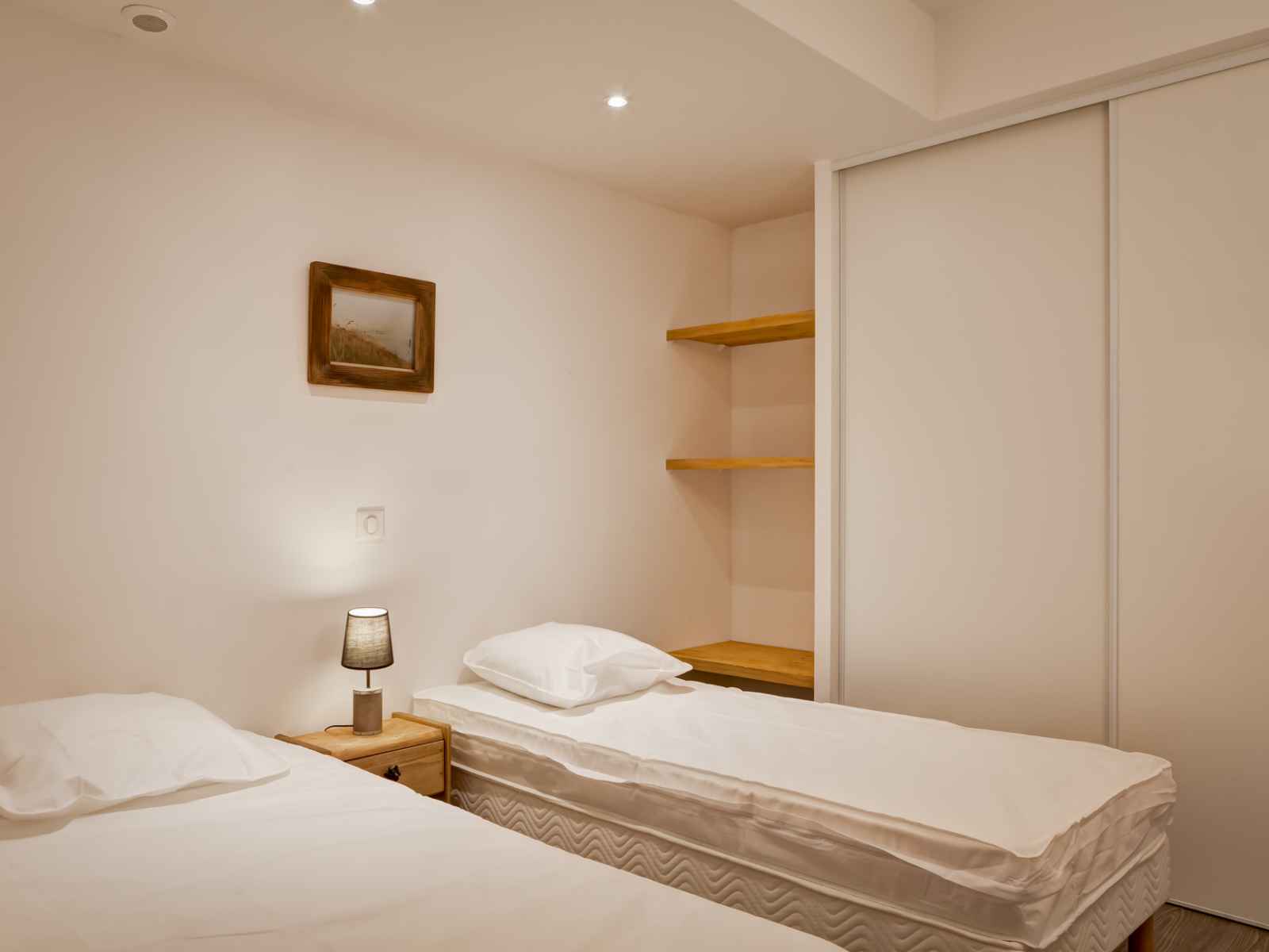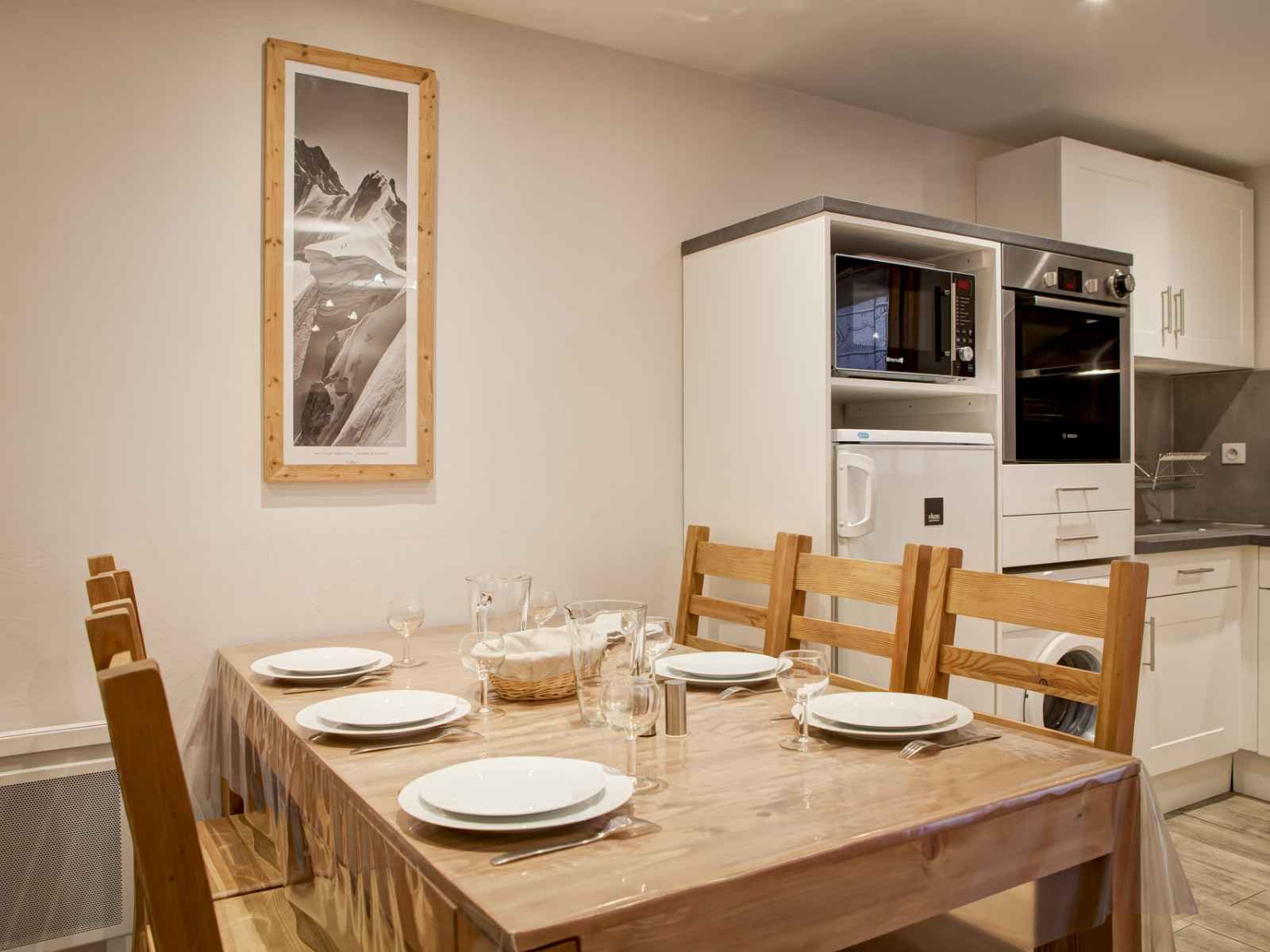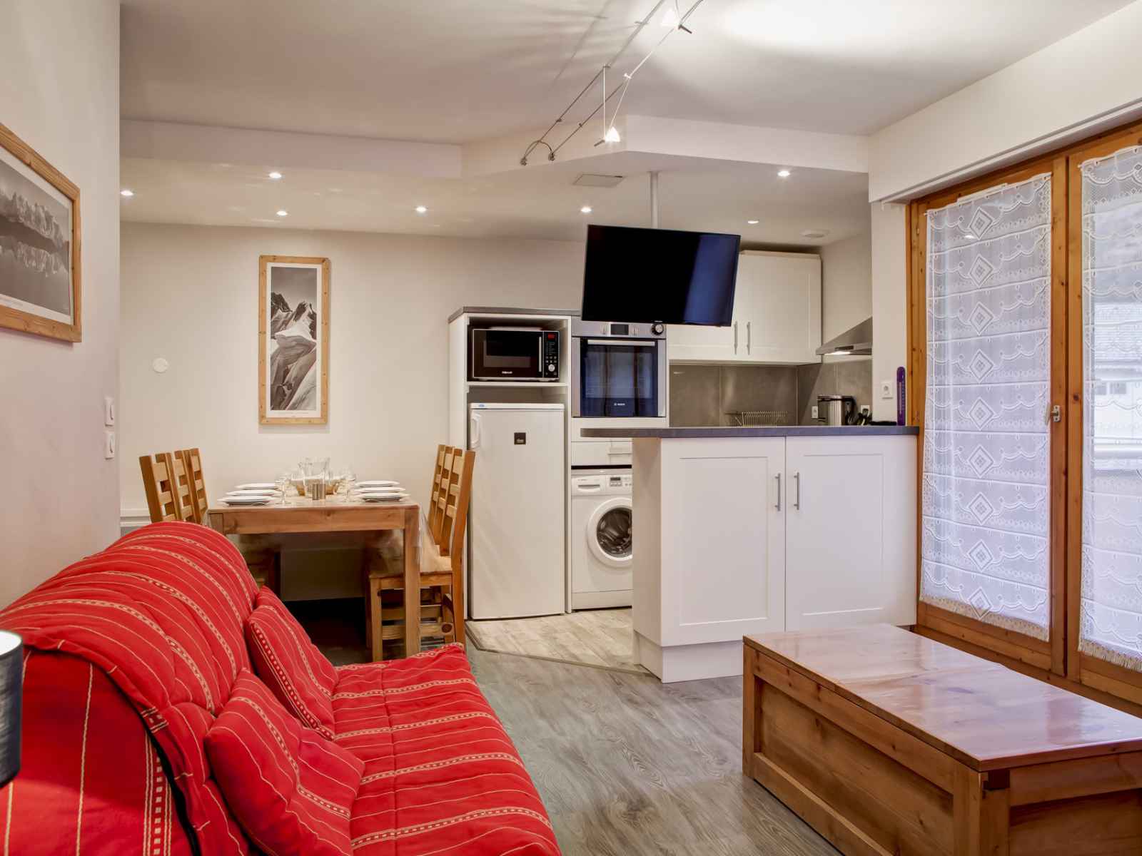 lave-vaisselle, réfrigérateur avec freezer et hotte de cuisson. COUCHAGES : - Chambre 1 sans fenêtre : un lit double en 140 cm. - Chambre 2 (fenêtre sur châssis fixe) : 2 lits simples en 80 cm. - Chambre 3 sans fenêtre : un ensemble de lits superposés (2 personnes). Deux salles de douche avec toilettes. Lave-linge. Accès internet WIFI inclus. Casier à skis. Place de parking couverte incluse. CONDITIONS DE LOCATION : Linge de lit inclus du 15/12 au 15/04 pour les courts séjours d'hiver. Le linge de lit n'est pas inclus pour les séjours de cures toute l'année. Linge de toilette et ménage de fin de séjour non inclus et sur demande. Caution demandée à l'arrivée. Supplément de 30€ par animal par séjour (maximum 2 animaux). INTERDICTION DE FUMER DANS LE LOGEMENT
