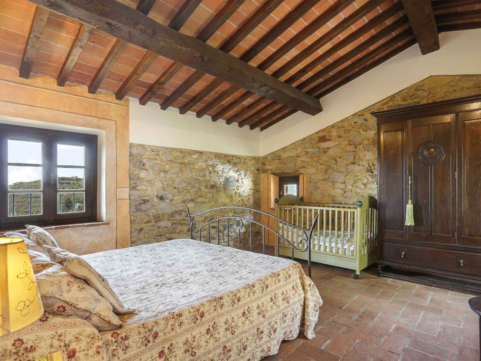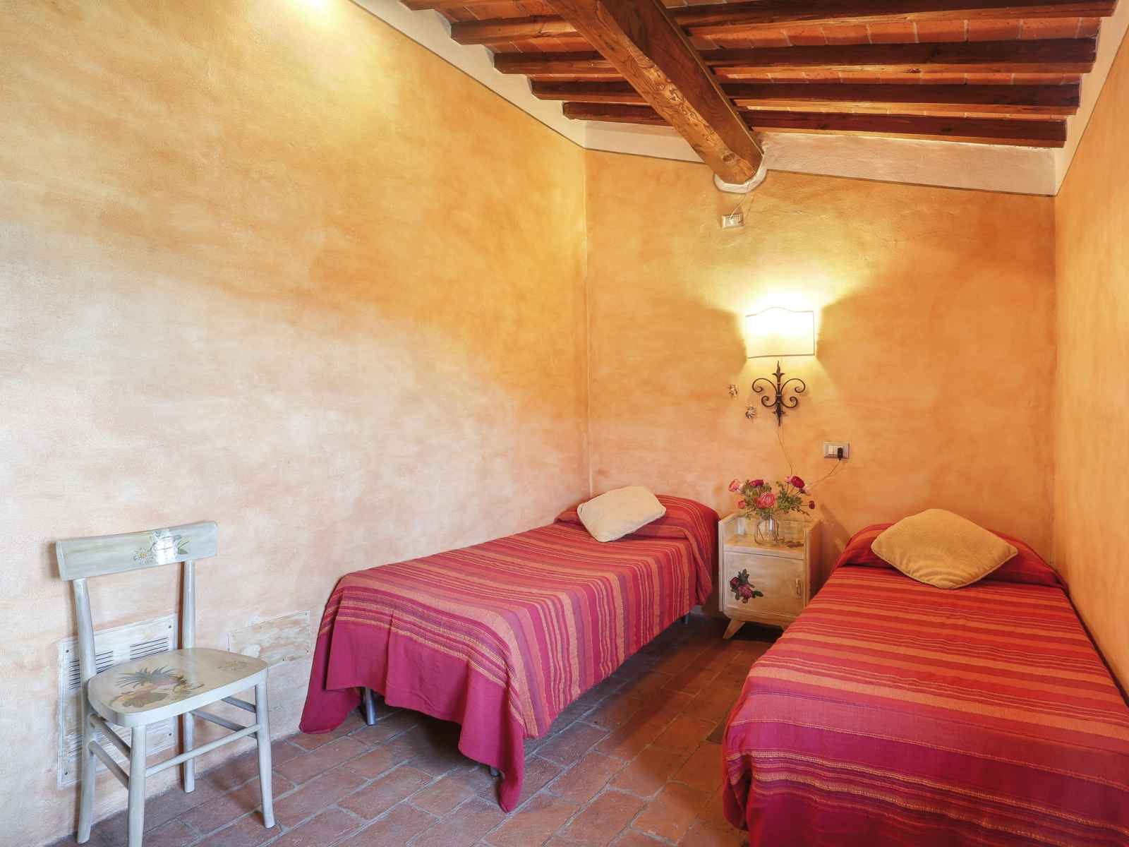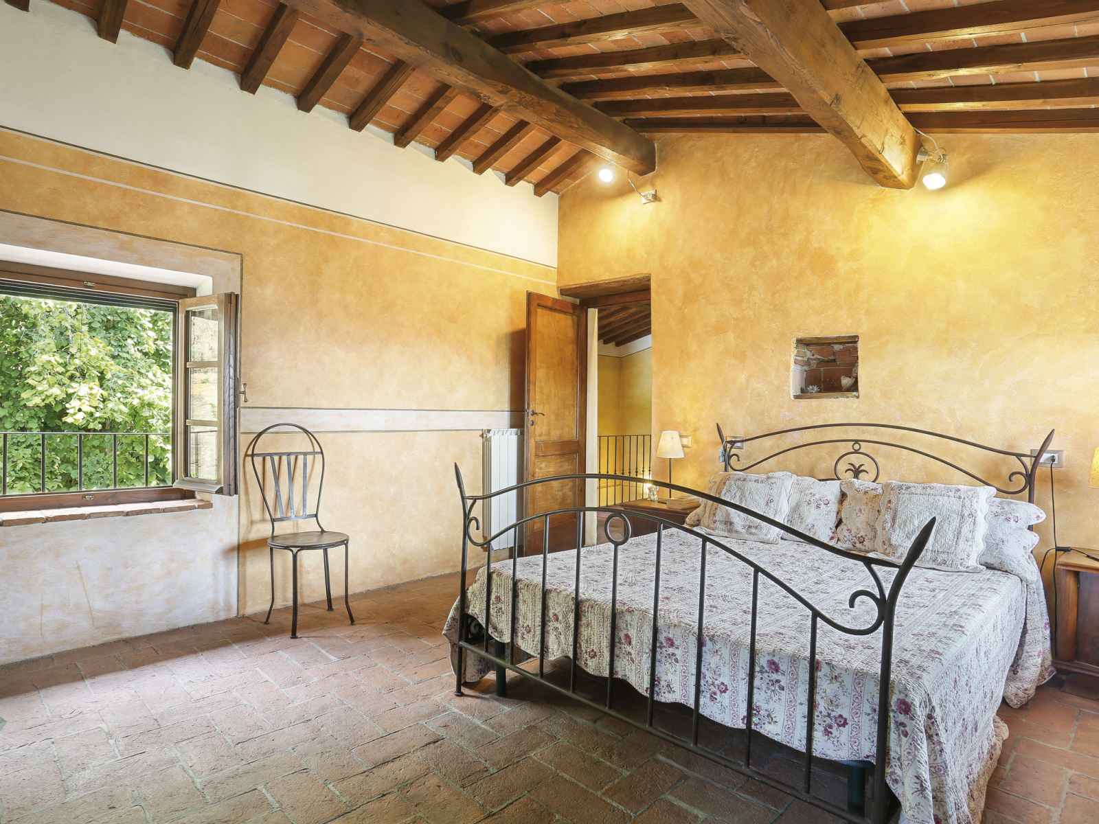 arbres, champ, piscine (13 x 5 m, profondeur 116 - 240 cm, disponibilité saisonnière: 02.mai. - 03.oct.). douche extérieure, espace de jeux pour les enfants. infrastructures de la maison: lave-linge (en commun). accès en voiture par un chemin étroite de 2 km de long (route de montagne). place de parking sur le terrain. magasins 1 km, supermarché 3.6 km, arrêt de bus 900 m, parc "marina di pisa" 40 km. veuillez noter: le propriétaire habite sur le même terrain.