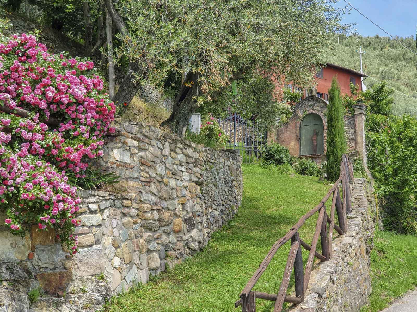 Ancienne ferme individuelle "san bastiano", 160 m au dessus du niveau de la mer, rénovée. 2 appartements dans la même entité. À 1 km du centre de buti, à 24 km du centre de lucca, à 25 km du centre de pisa, situation isolée sur un versant, à 40 km de la mer. en commun: terrain 10'000 m2 (clôturé), jardin sur plusieurs niveaux avec