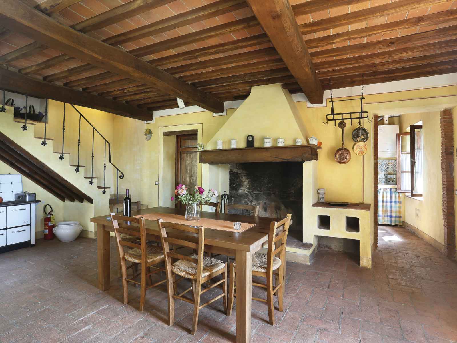 "i limoni (but151)", apt 4 pièces 110 m2 sur 2 niveaux, au rez-de-chaussée. aménagement fonctionnel: séjour ouvert avec tv (satellite). grande salle à manger avec cheminée et table pour les repas. cuisine ouverte (four, poêle à gaz, 5 feux, congélateur, cafetière électrique) avec table pour les repas. douche/wc. À l'étage supérieur: