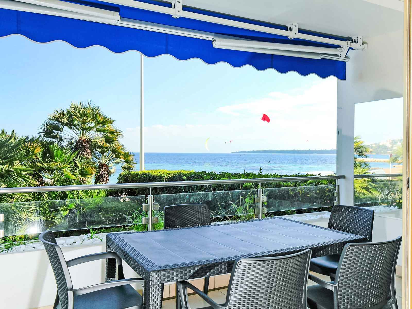 sur la terrasse. 1 petite chambre avec 1 lit (120 cm), air-conditionné. Grande cuisine ouverte (four, lave-vaisselle, 3 plaques à induction, micro-ondes, cafetière électrique). Bain/WC, douche/WC. Chauffage à air chaud. Terrasse 12 m2, terrasse 15 m2. Meubles de terrasse. Très belle vue sur la mer. A disposition: lave-linge, sèche-linge. Internet (Connexion WIFI, gratuit). Veuillez noter: détecteur de fumée. 06029003778AK