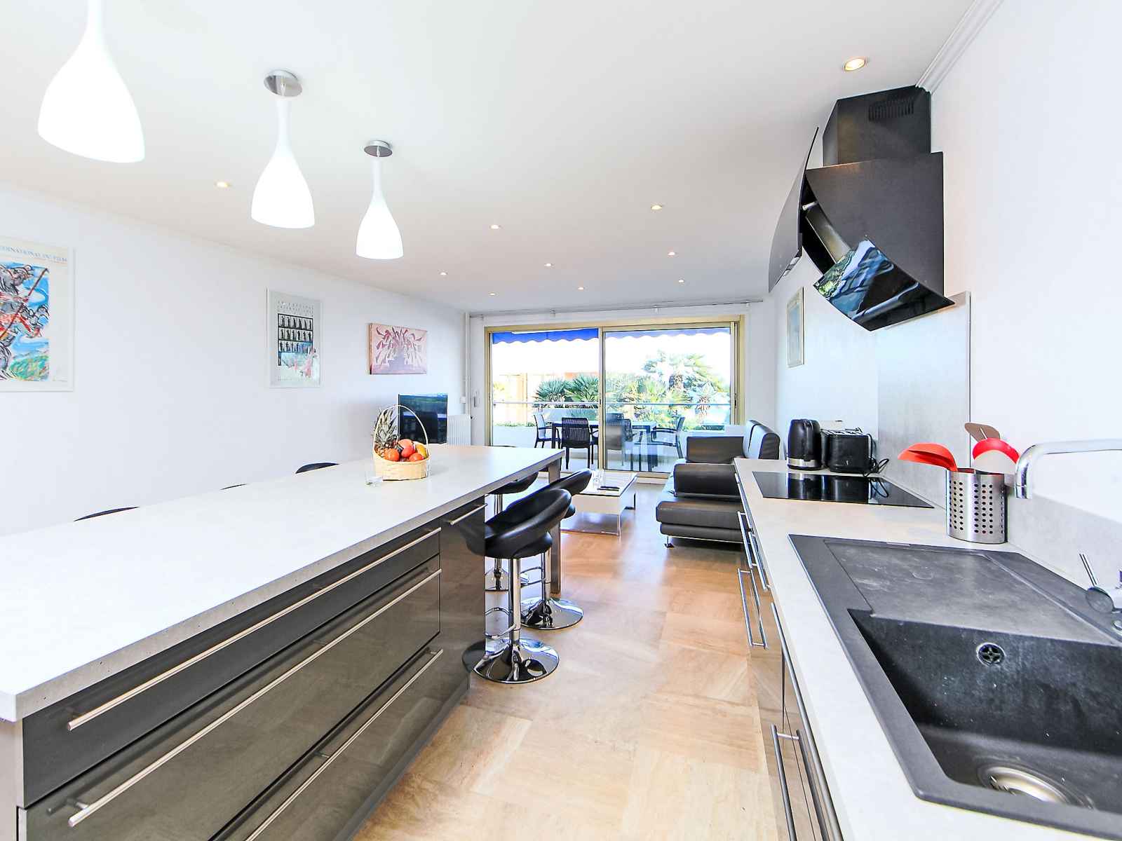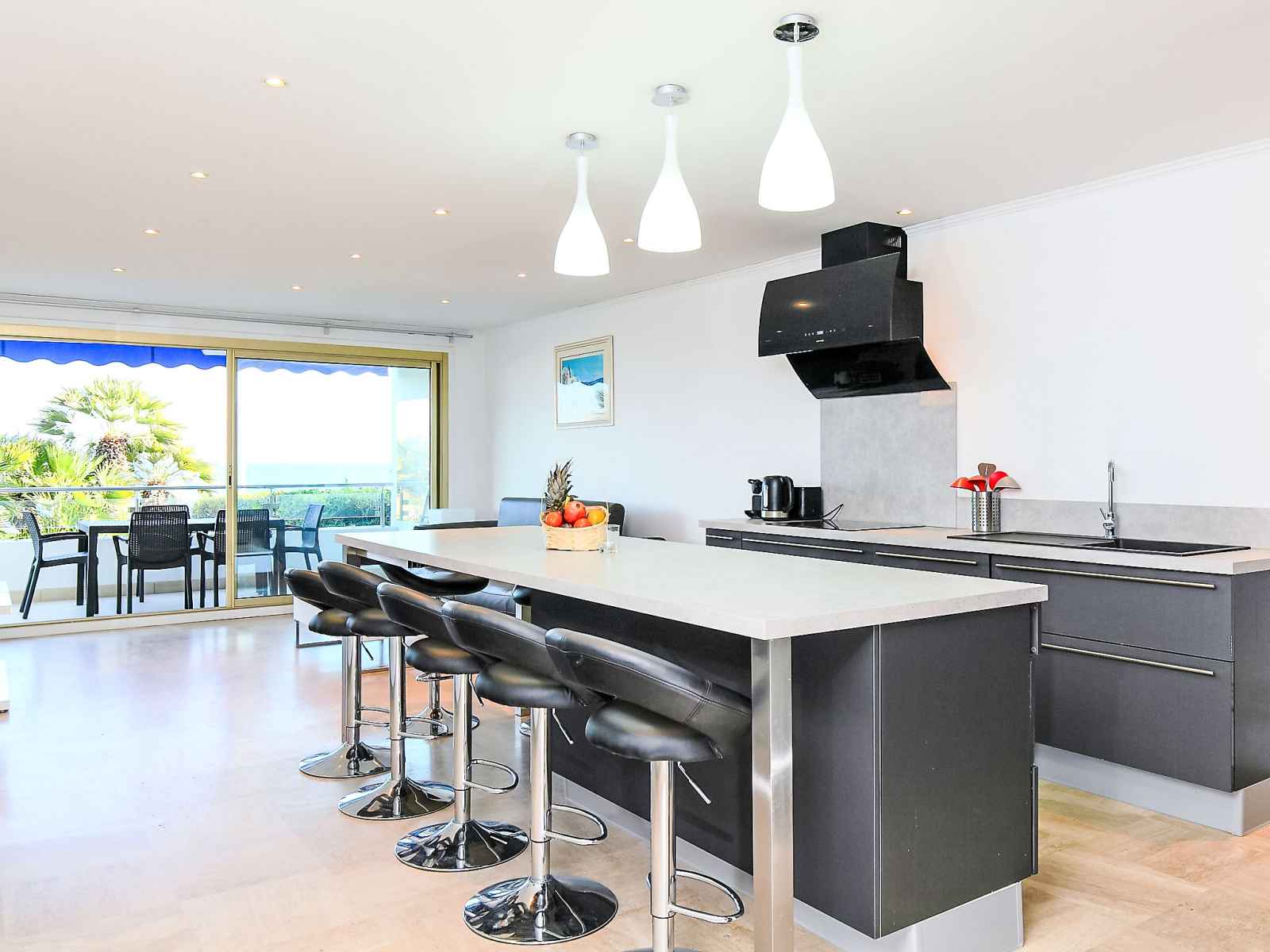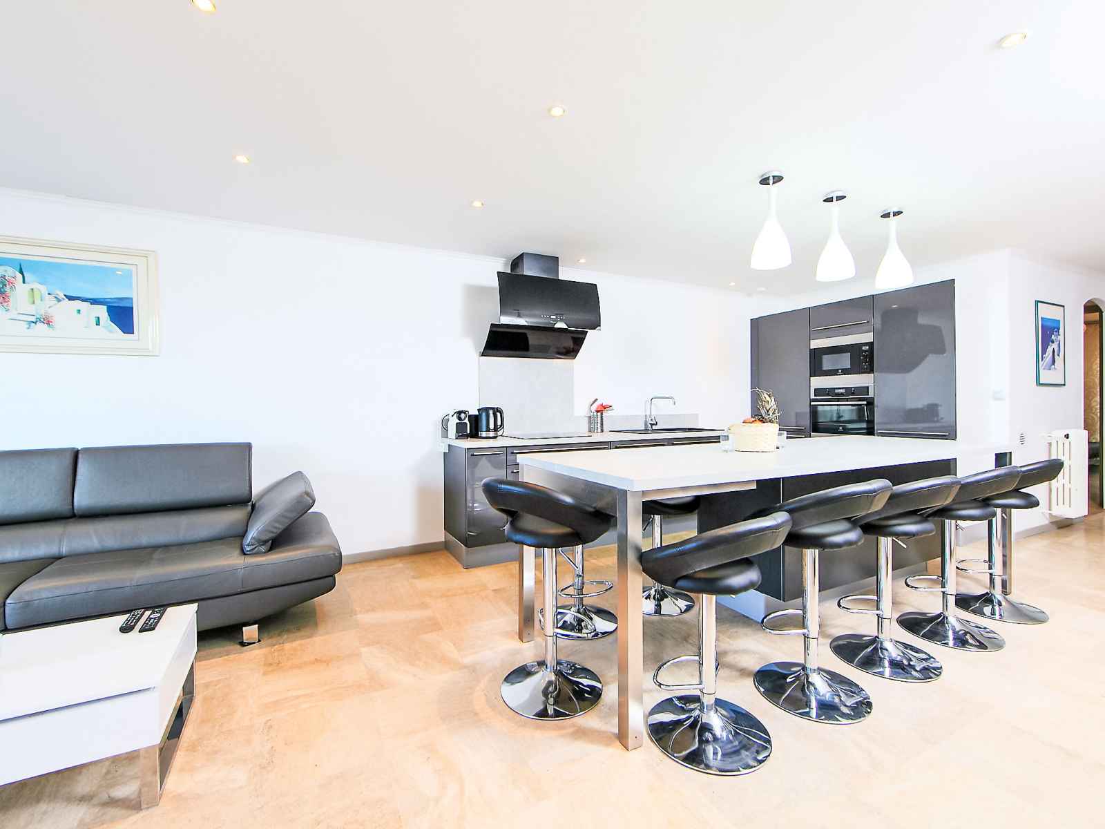 Apt 4 pièces 92 m2 au 1er étage. complètement rénové en 2015, aménagement confortable et moderne: séjour/salle à manger avec tv (satellite), écran plat et air-conditionné. sortie sur la terrasse. 1 chambre avec 1 grand-lit (160 cm), air-conditionné. sortie sur la terrasse. 1 chambre avec 1 grand-lit (160 cm), air-conditionné. sortie