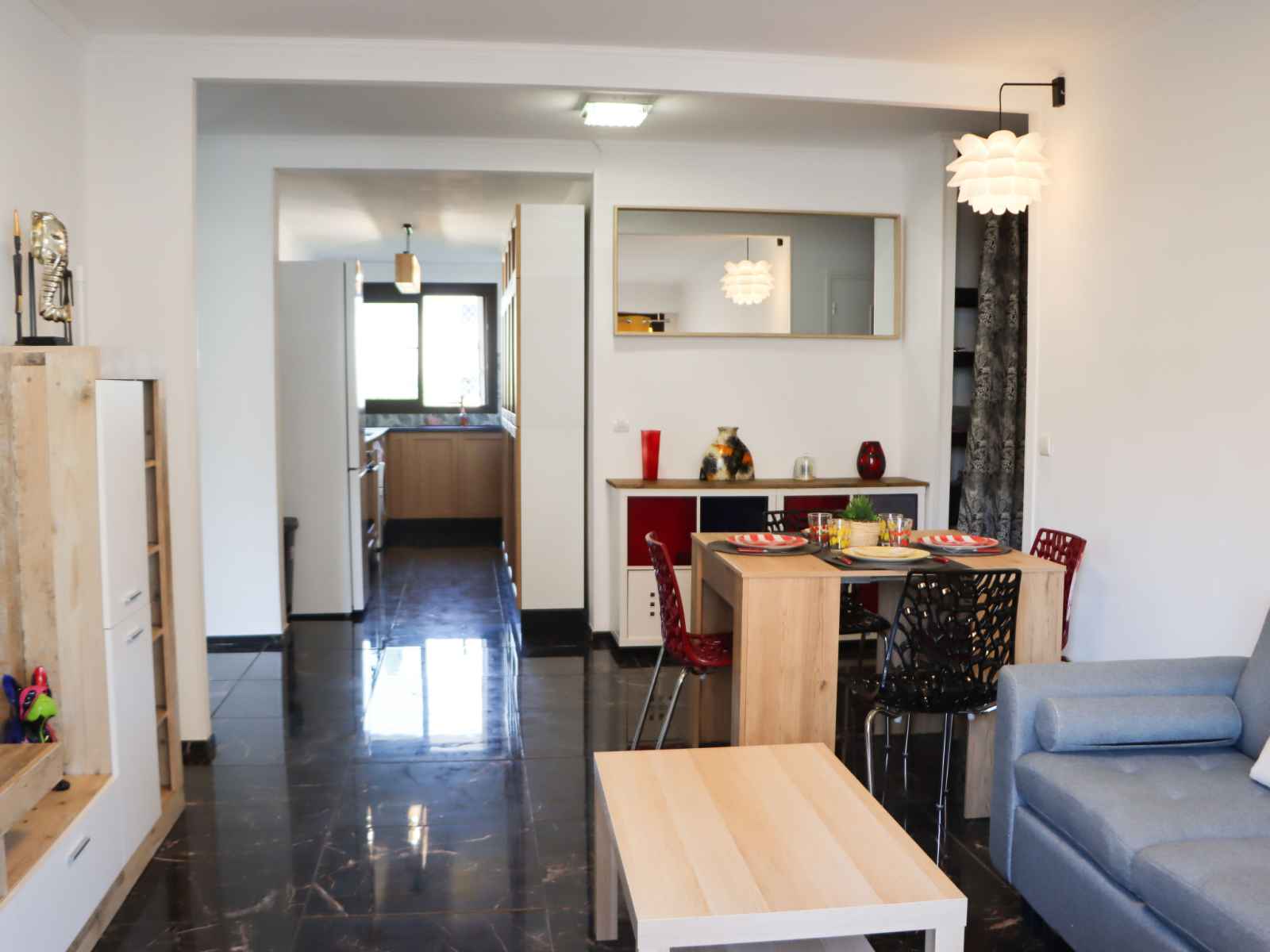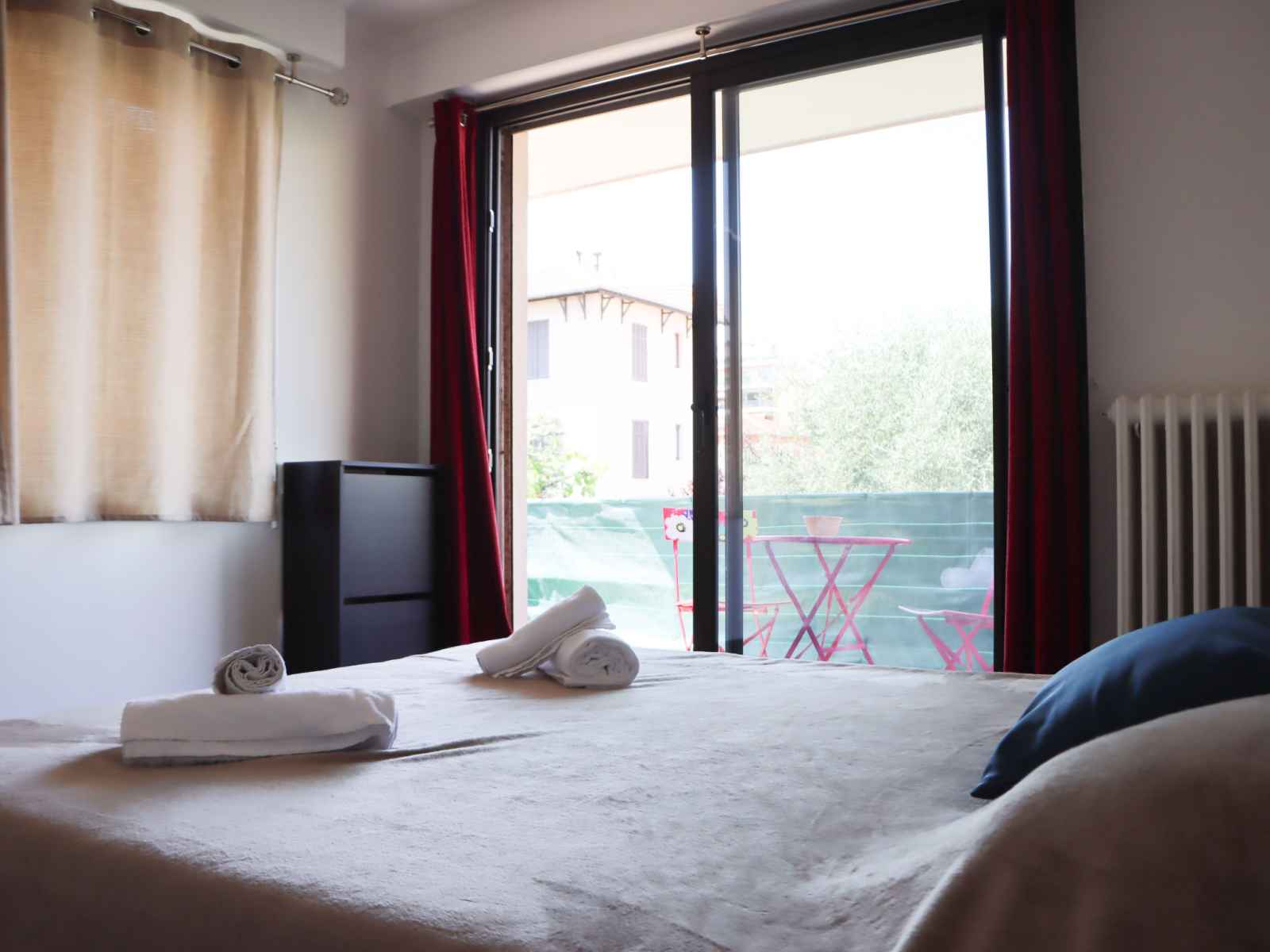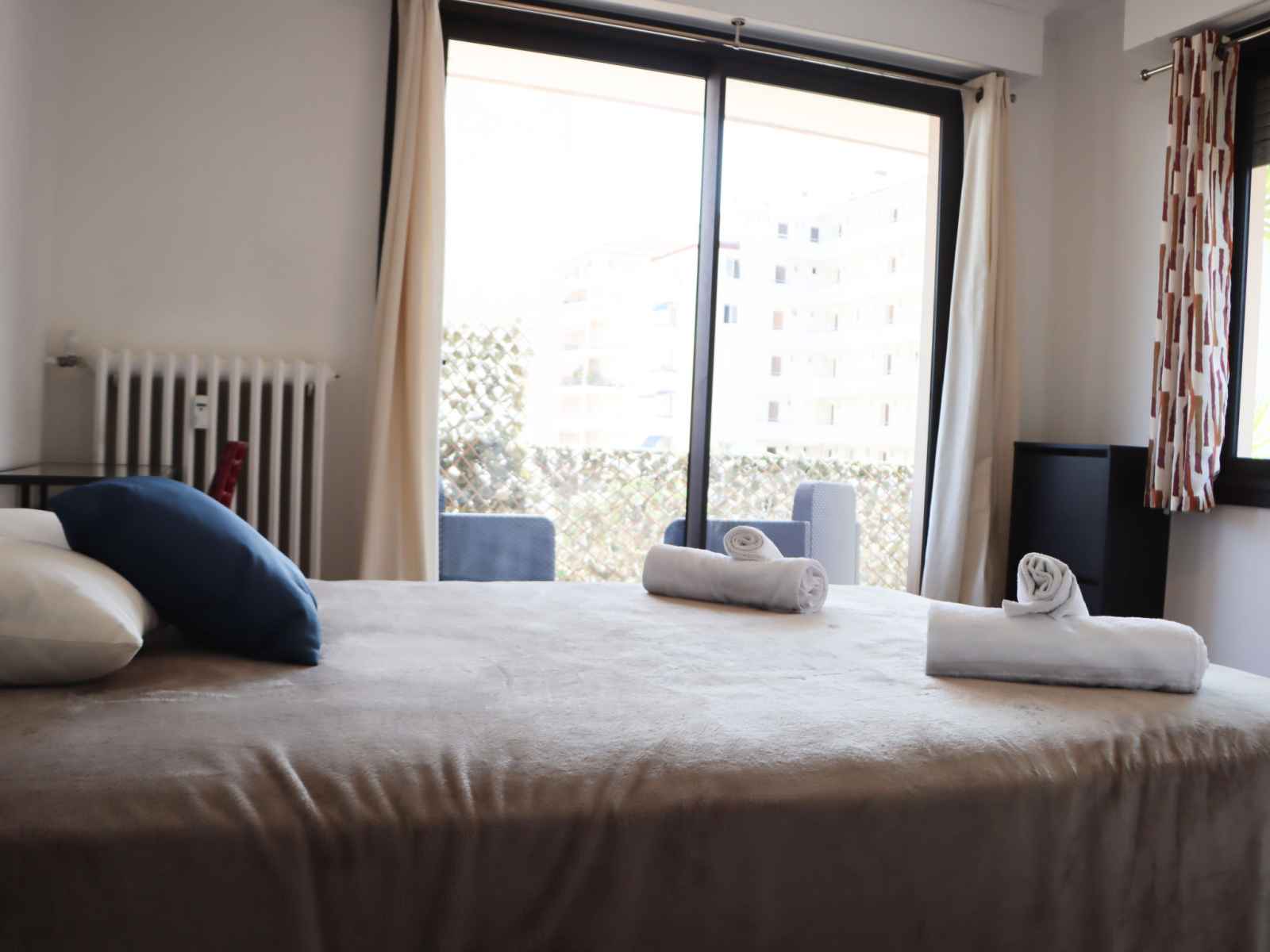 Apt 4 pièces 100 m2 au 2ème étage. aménagement confortable: séjour/salle à manger avec tv (écran plat). sortie sur la terrasse. 2 chambres, chaque chambre avec: 1 grand-lit (140 cm, longueur 190 cm). sortie sur la terrasse. 1 chambre avec 1 grand-lit (160 cm, longueur 200 cm). cuisine (four, lave-vaisselle, 3 plaques à induction,
