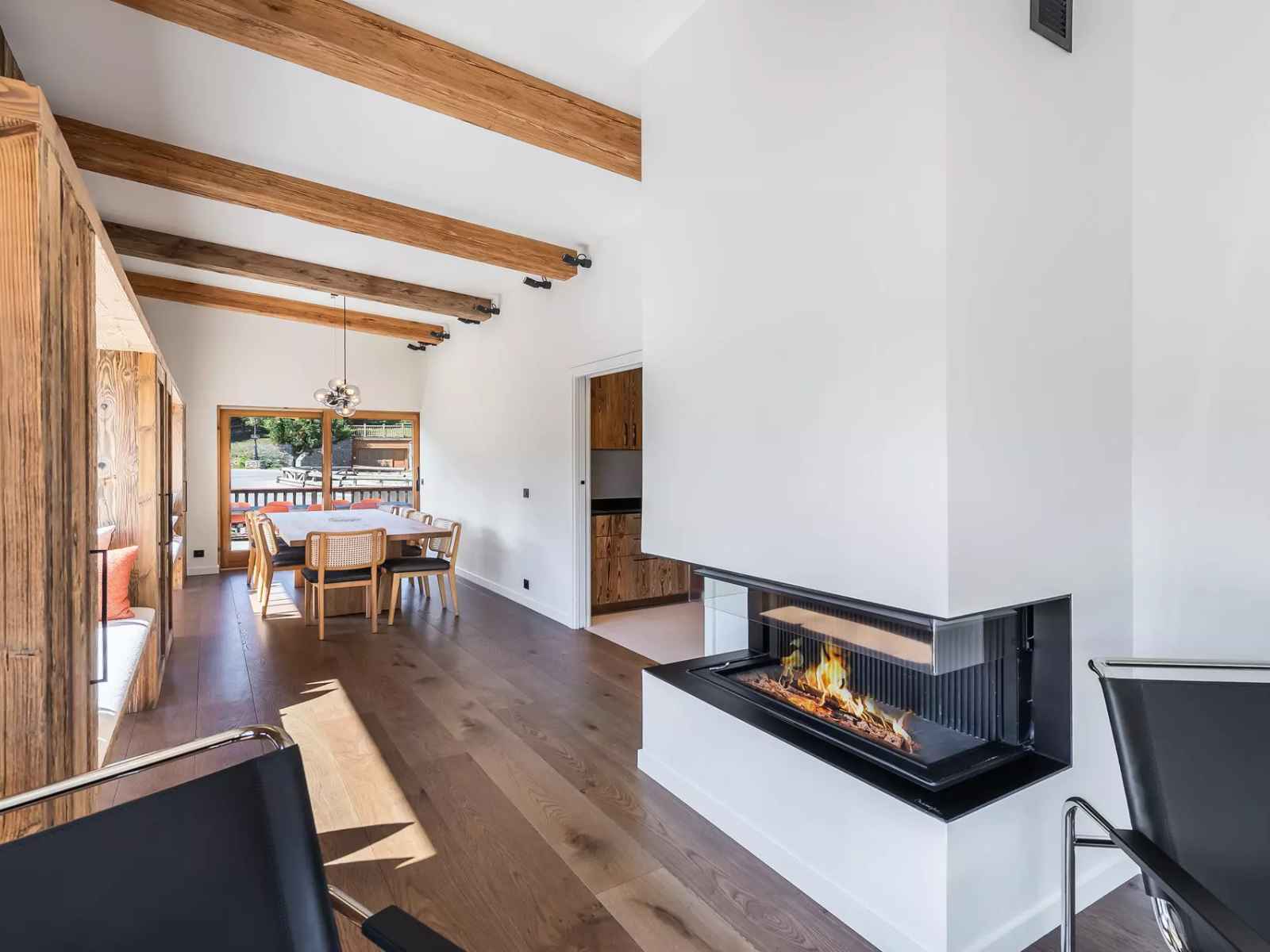 - Un séjour, salle à manger avec cheminée et deux terrasses
