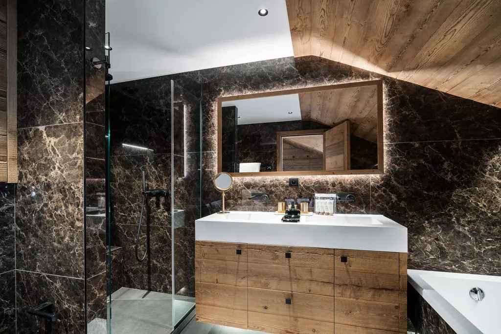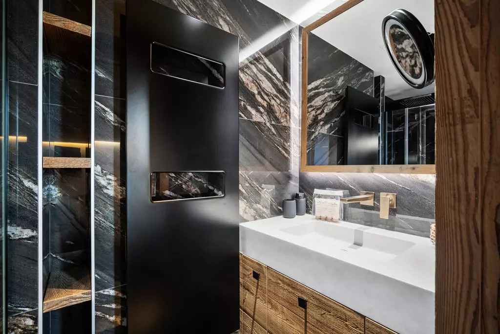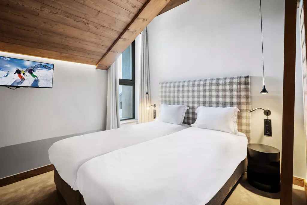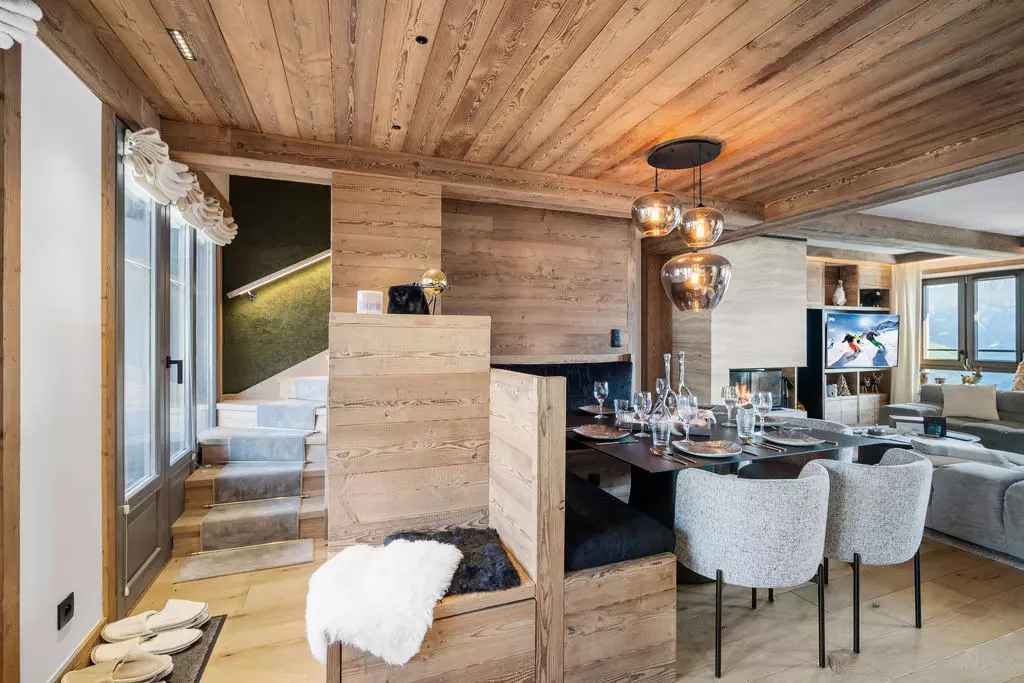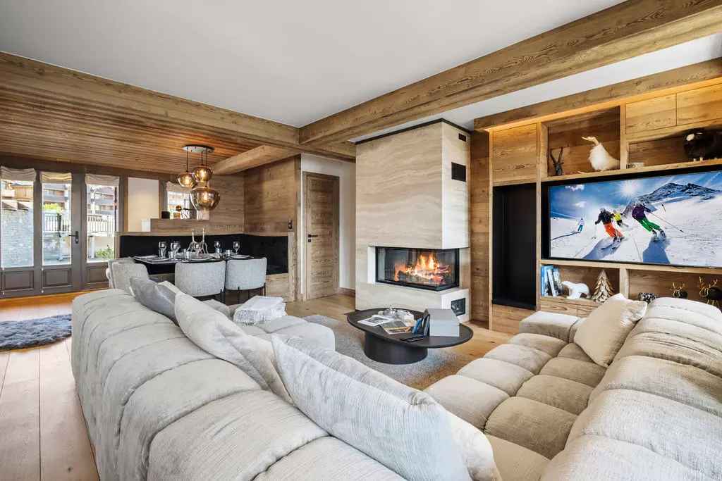 appartement moderne d'environ 115m² pour 6 personnes avec 3 chambres, situé à proximité des pistes dans le quartier centre de courchevel.