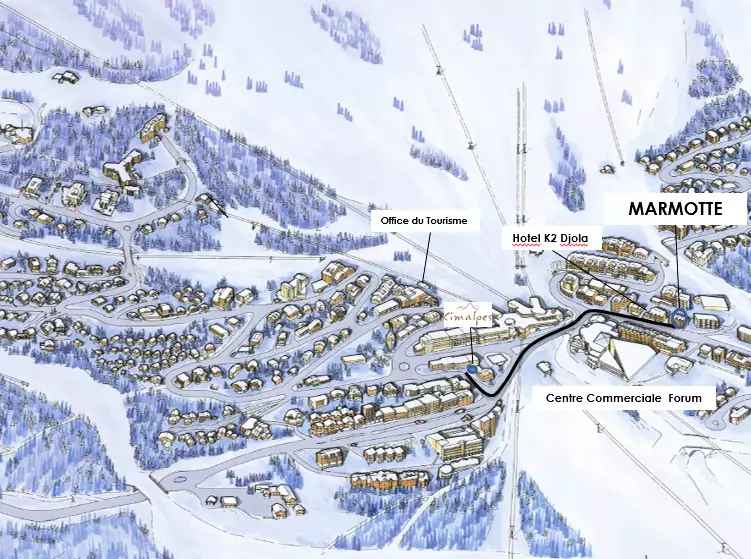 La résidence marmottes est située en plein dans le centre de courchevel 1850. elle est à proximité de l'ecole de ski français, du jardin des enfants et de plusieurs restaurants locaux. son emplacement est idéal, étant à mi-chemin entre les commodités du centre et l'accès aux pistes.