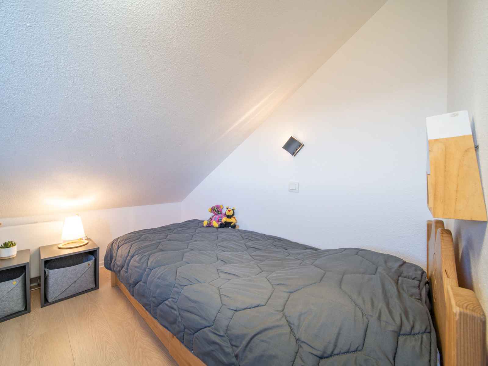 orientée sud-est. 1 chambre avec 1 x 2 lits superposés (80 cm, longueur 190 cm). 1 chambre mansardée avec 2 lits (90 cm, longueur 190 cm). Cuisine ouverte (four, lave-vaisselle, 4 plaques vitrocéramiques, grille-pain, bouilloire électrique, congélateur, cafetière électrique, appareil à raclette, combiné micro-ondes). Salle de bains, douche, WC séparé. Chauffage électrique. Sol en parquet. Grand balcon 7 m2, situation sud-est. Mobilier de balcon, chaises longues (2). Très belle vue sur les montagnes, la vallée et la piscine. A disposition: fer à repasser, sèche-cheveux. Internet (Connexion WIFI, en sus). Place de parking No 157 (couvert, 1 Voiture), hauteur 190 cm. Veuillez noter: logement non-fumeur. Détecteur de fumée. Annonce d'un particulier (art 155, IV du CGI).