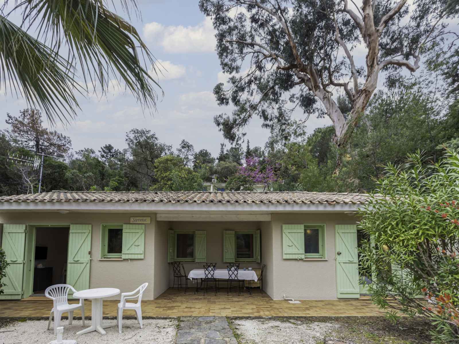 Pramousquier à 8 km de le lavandou: belle résidence accueillante, confortable "cap négre: domaine de la pinède", mitoyenne, environnée par les arbres. À 100 m de la mer, accès direct à la plage. en commun: jardin entretenu (pas clôturé) avec plantes et fleurs, piscine chauffée, à l'abri des regards, cloturée (17 x 9 m, profondeur 55 -