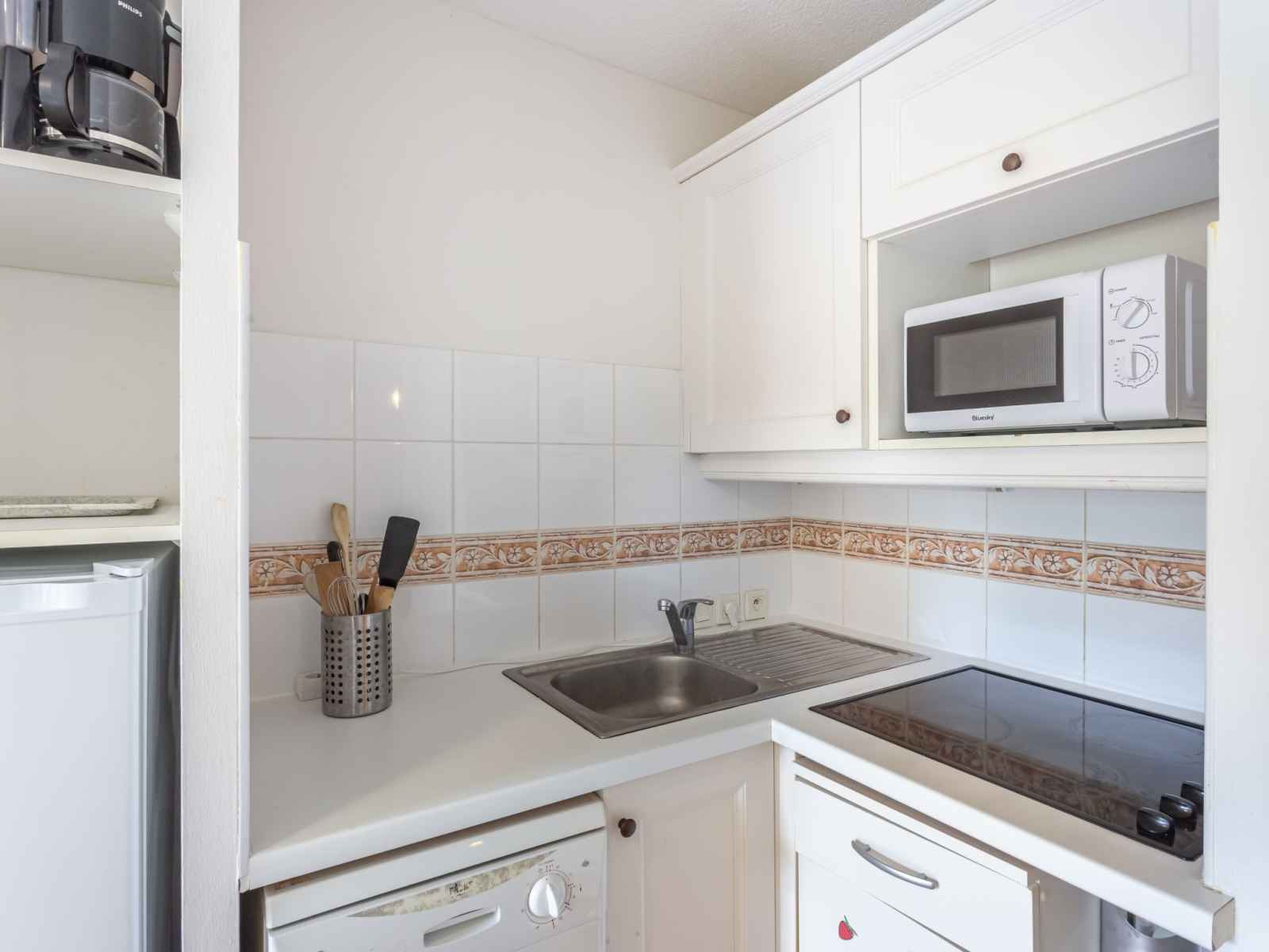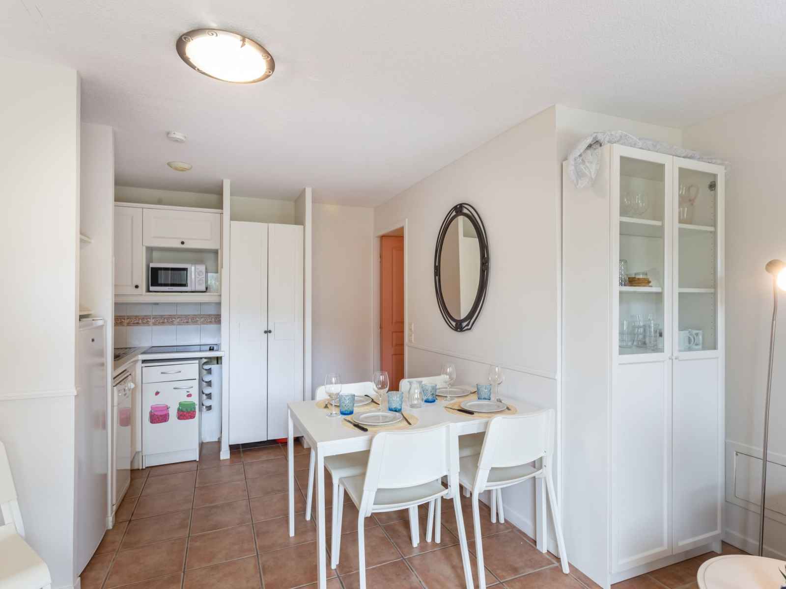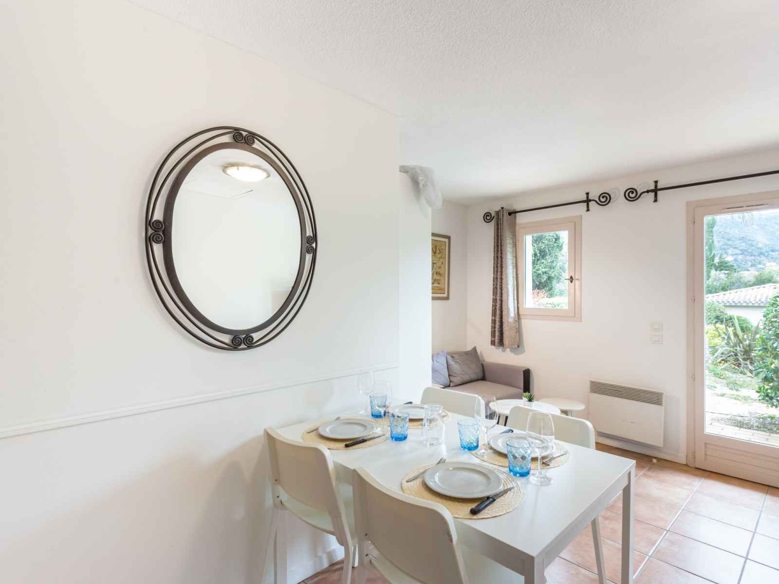 lits superposés (80 cm, longueur 190 cm). Coin cuisine (lave-vaisselle, 3 plaques vitrocéramiques, grille-pain, bouilloire électrique, micro-ondes, cafetière électrique, combiné micro-ondes). Salle de bains, WC séparé. Chauffage électrique. Terrasse 30 m2, jardin 64 m2. Meubles de terrasse. A disposition: fer à repasser. Internet (Connexion WIFI, gratuit). Place de parking. Veuillez noter: adapté(e) aux familles. TV seulement FR. Détecteur de fumée. Au lieu d'une chambre fermée, des espaces de couchage sont situés dans une zone ouverte (galerie, alcôve...).