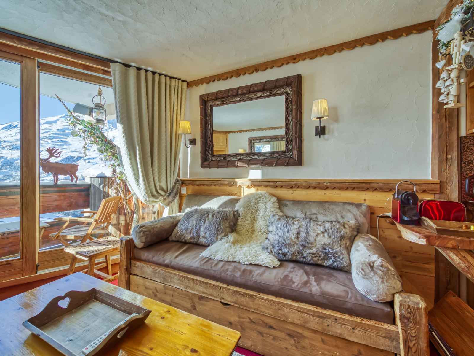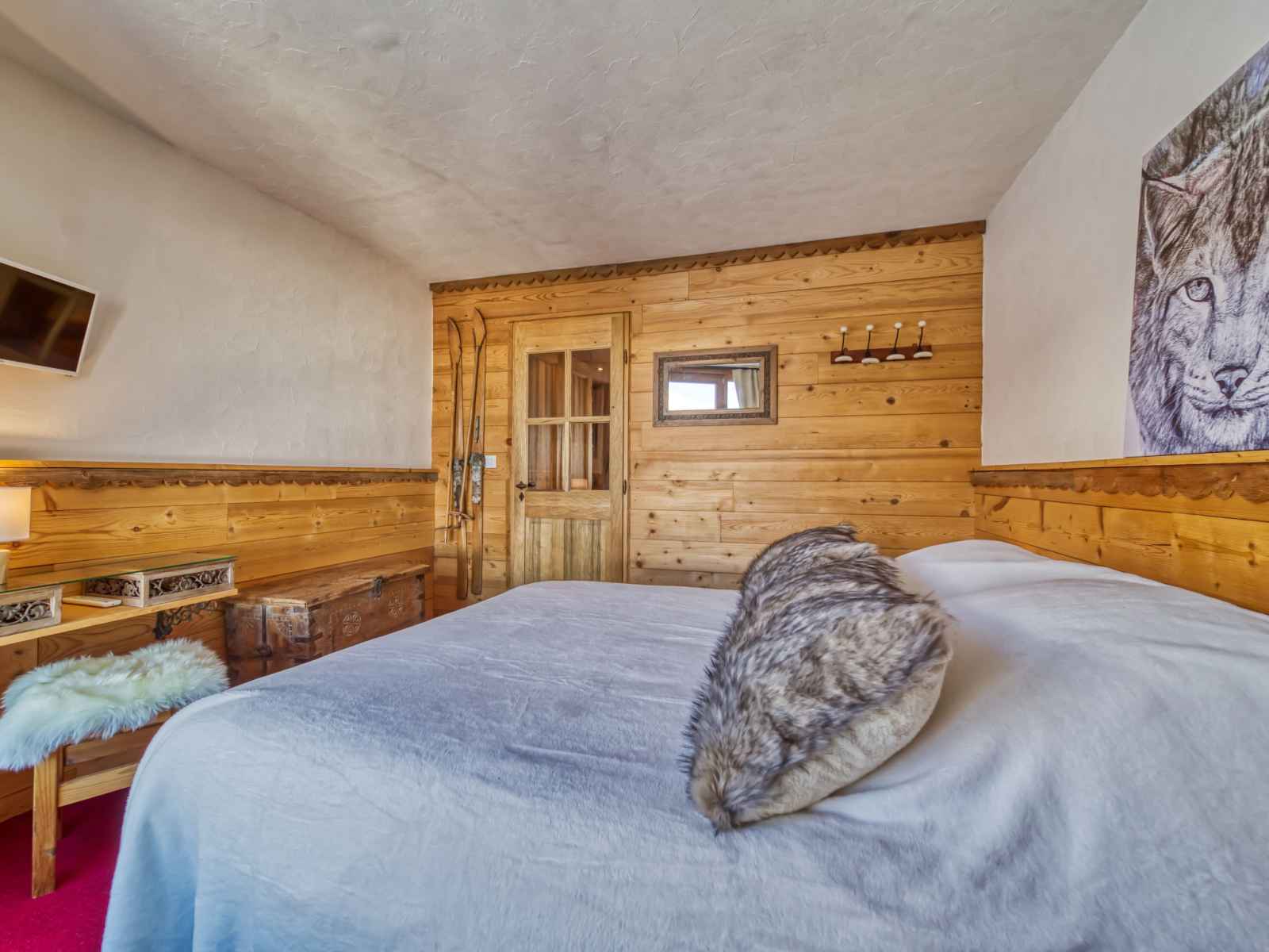 superposés (80 cm, longueur 190 cm), 1 lit gigogne (2 pers. 2 x 80 cm, longueur 190 cm), TV (écran plat). 1 grande chambre avec porte coulissante avec 1 grand-lit (140 cm, longueur 190 cm), douche/WC et TV (écran plat). Cuisine ouverte (four, lave-vaisselle, 3 plaques à induction, grille-pain, bouilloire électrique, micro-ondes, cafetière électrique, Capsules pour machine à café (Nespresso) (NON INCLUSES), appareil à raclette). Douche, WC séparé. Chauffage par le sol. Balcon, situation sud. Très belle vue sur les montagnes, la vallée et les pistes de ski. A disposition: sèche-cheveux. Internet (Connexion WIFI, en sus). Veuillez noter: logement non-fumeur. Détecteur de fumée. 73257004886HT