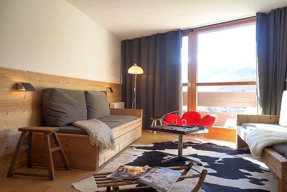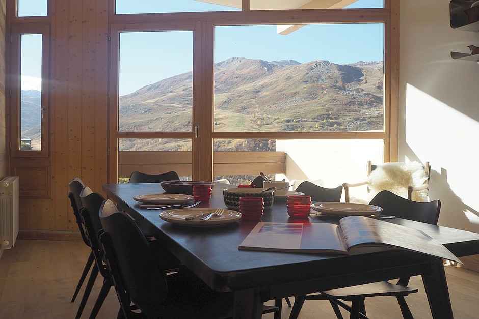 vintage. Sa situation au 8ème étage offre une vue magnifique sur la chaine de montagne de la Masse et dispose de 2 balcons orientés Sud. Entrée 2. Label : 4 flocons argent * Rez-de-chaussée : - Chambre : 1 lit double. (140) - Cuisine : 1 réfrigérateur, 3 plaques électriques, four traditionnel, lave-vaisselle, cafetière et grille pain électriques, et 1 micro-onde. - Salle de bain douche à l'italienne - Toilettes séparées * Etage : - Salon : 2 lits simples (90) banquette et 2 lits simples superposés (90). - Chambre : 1 lit double (140) - Salle de bain douche à l'italienne avec WC Télévision. Logement non-fumeur. Animaux refusés Appartement équipé de couettes et de couvertures Prestations comprises en hiver: Draps cotons fournis. Le couchage en hauteur ne convient pas à des enfants de moins de 6 ans.