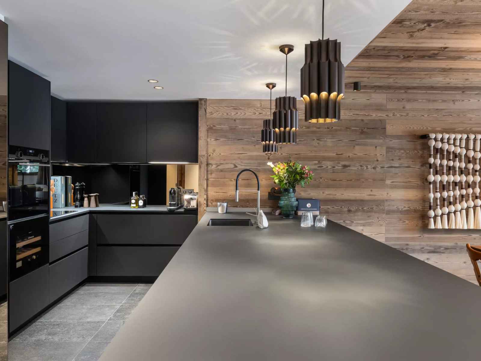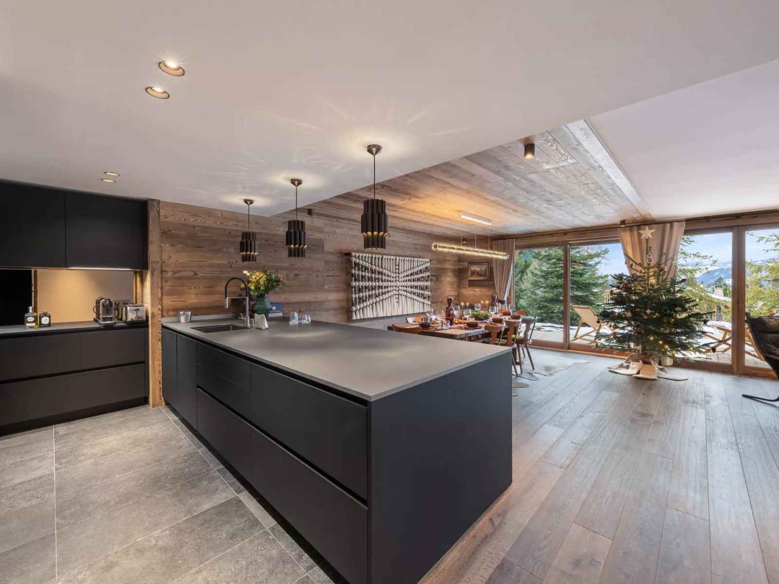 s’organise autour d’un salon chaleureux, d’une cuisine ouverte entièrement équipée, et d’un espace repas convivial. La décoration, soigneusement travaillée, met en valeur des pièces d’art sélectionnées, un mobilier raffiné et des finitions de haute qualité, créant une atmosphère à la fois contemporaine et authentiquement alpine. Les trois chambres disposent chacune de leur propre salle d’eau ou salle de bain, offrant à chaque occupant intimité et confort. Le Chauffage au sol, les toilettes invités ainsi qu’un espace buanderie avec lave-linge et sèche-linge complètent les prestations.