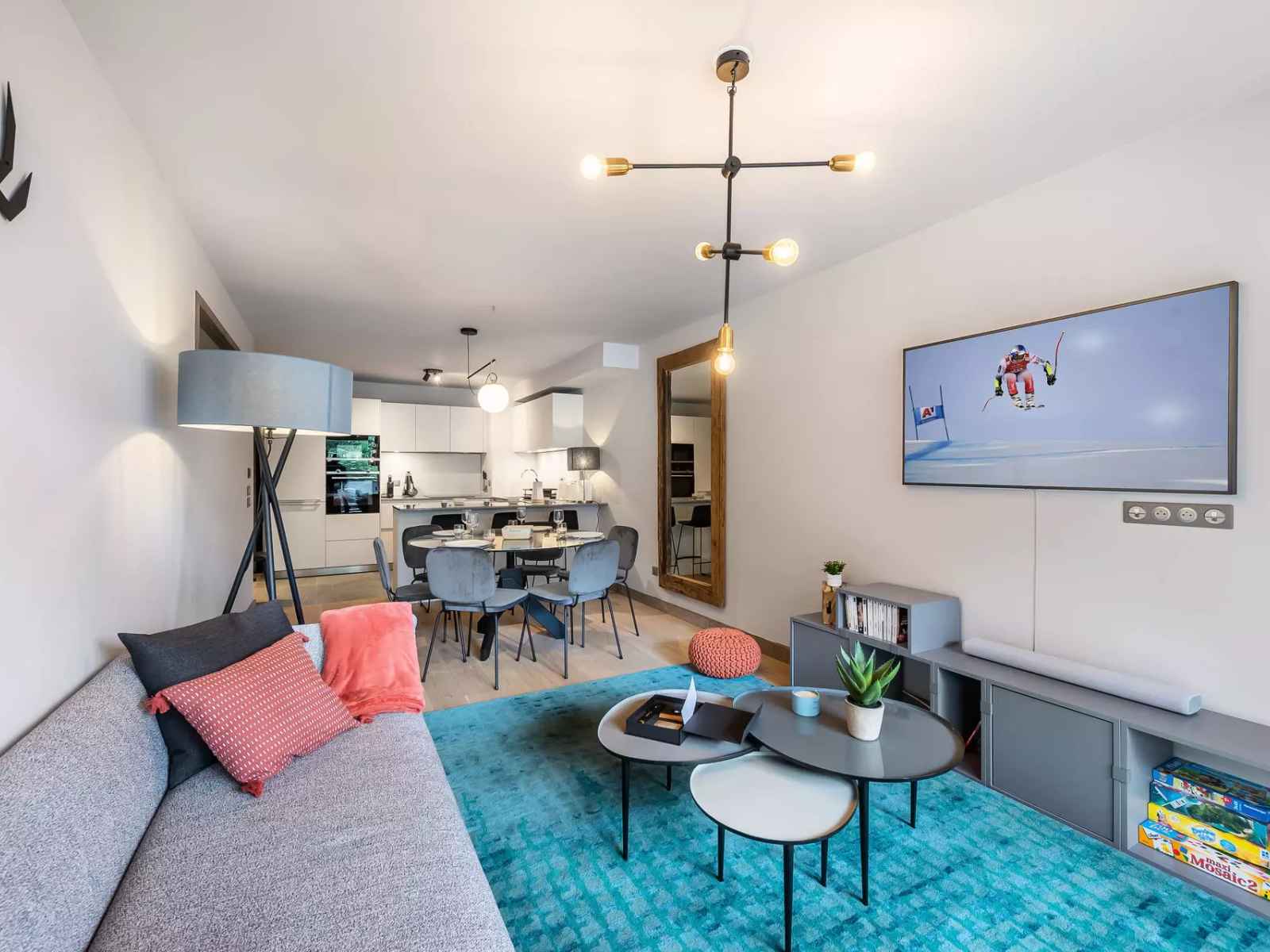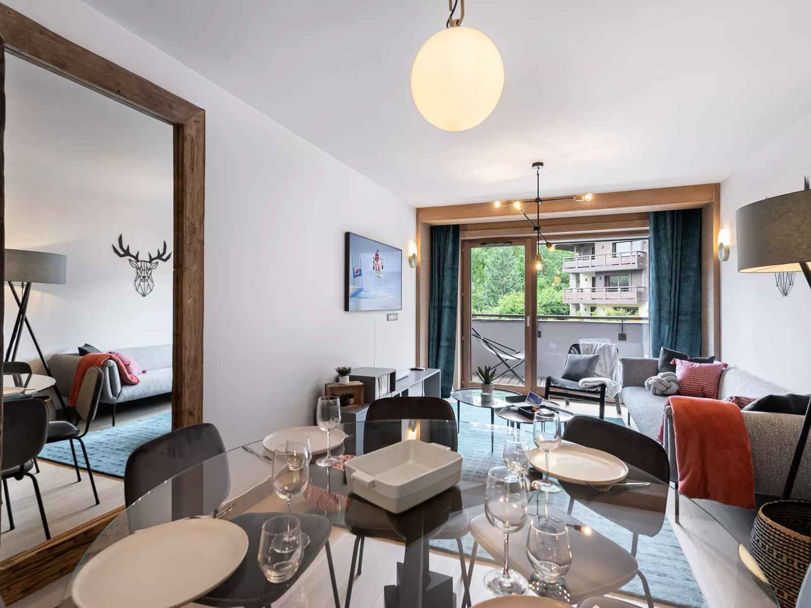 - Pièce de vie avec salon TV et balcon