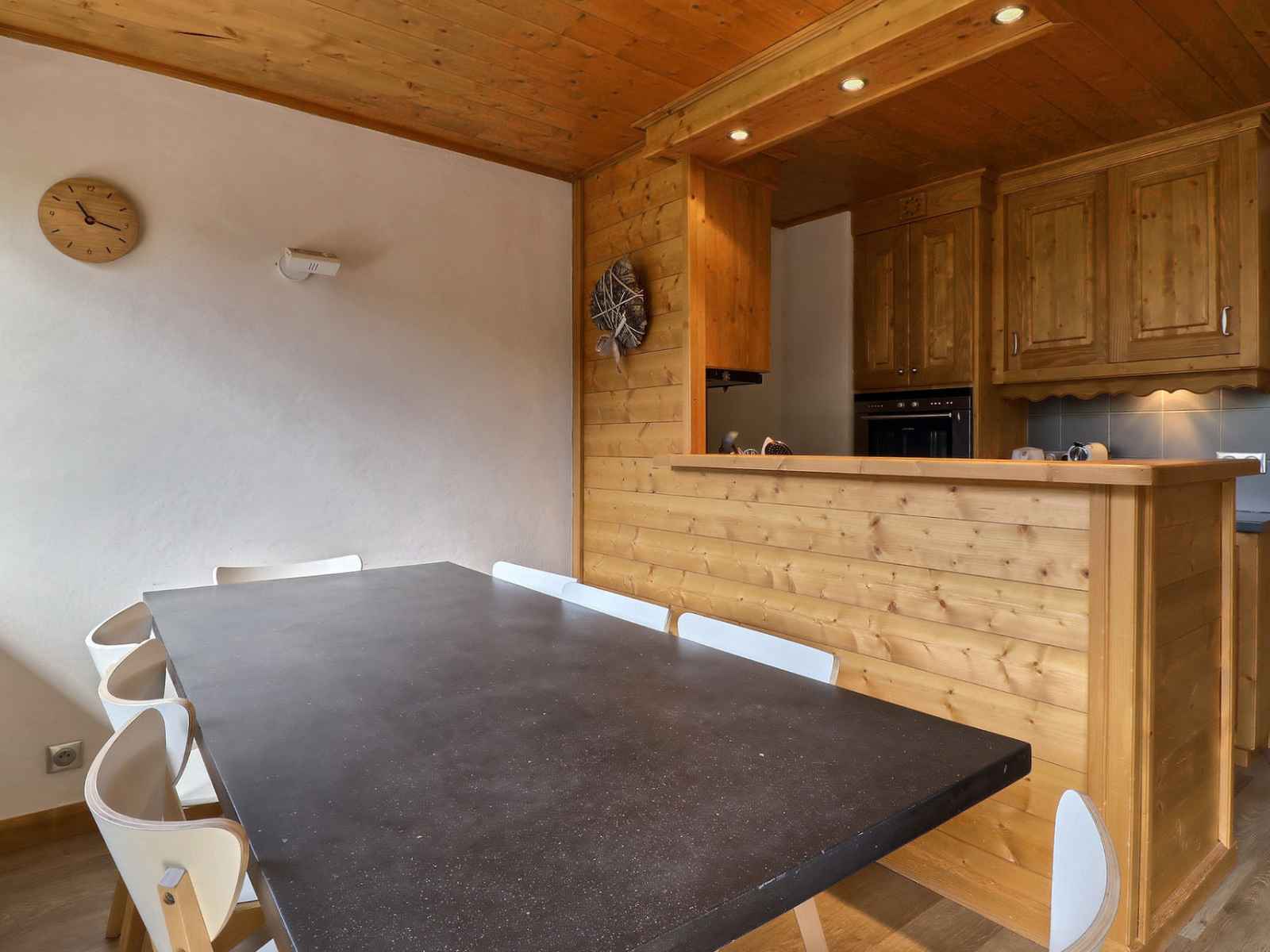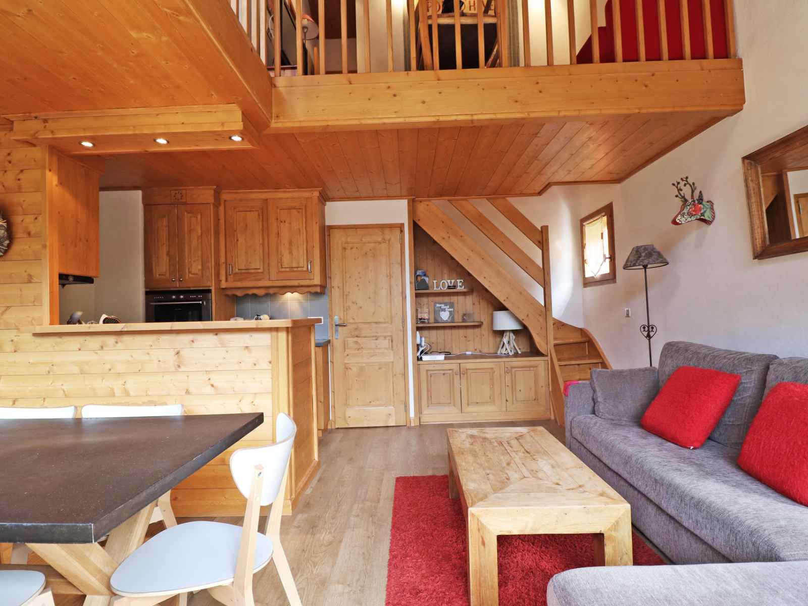 petit frigidaire, 4 plaques vitro-céramique, lave-vaisselle 45 cm, machine à café Nespresso, cafetière électrique, bouilloire électrique, grille pain, hotte Chambre : 1 ensemble de lits superposés (80x190) Salle de douche avec toilettes Etage : Chambre : 1 lit double (160x200) Chambre : 1 lit simple (vélux fixe 80x190) + 1 lit tirroir (80x190) Salle de bain avec toilettes Mezzanine ouverte sur séjour avec 1 lit double (140x190) vélux fixe et un coin télévision Télévision écran plat incluse, dans la mezzanine et dans la chambre double Accès INTERNET PRIVE HAUT DEBIT GRATUIT (dépendante de l'opérateur garantie) Chauffe-eau individuel offrant un bon confort sous réserve d’une utilisation raisonnable NON-FUMEUR - ANIMAUX INTERDITS