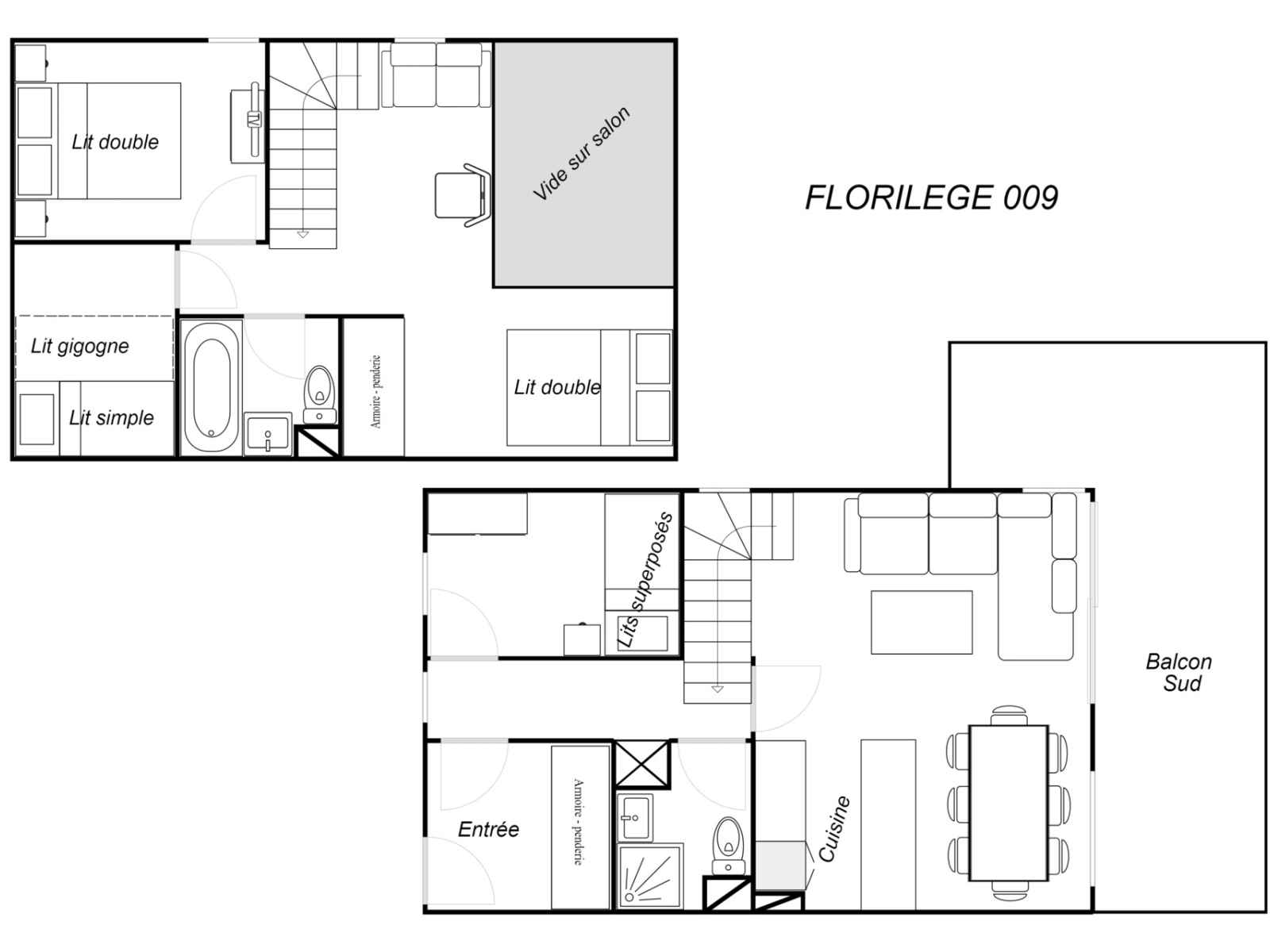 4 pièces duplex, 8 personnes, 63m², balcon sud, 3ème etage