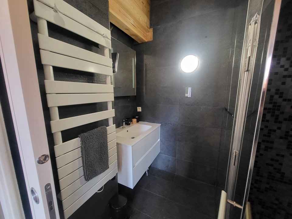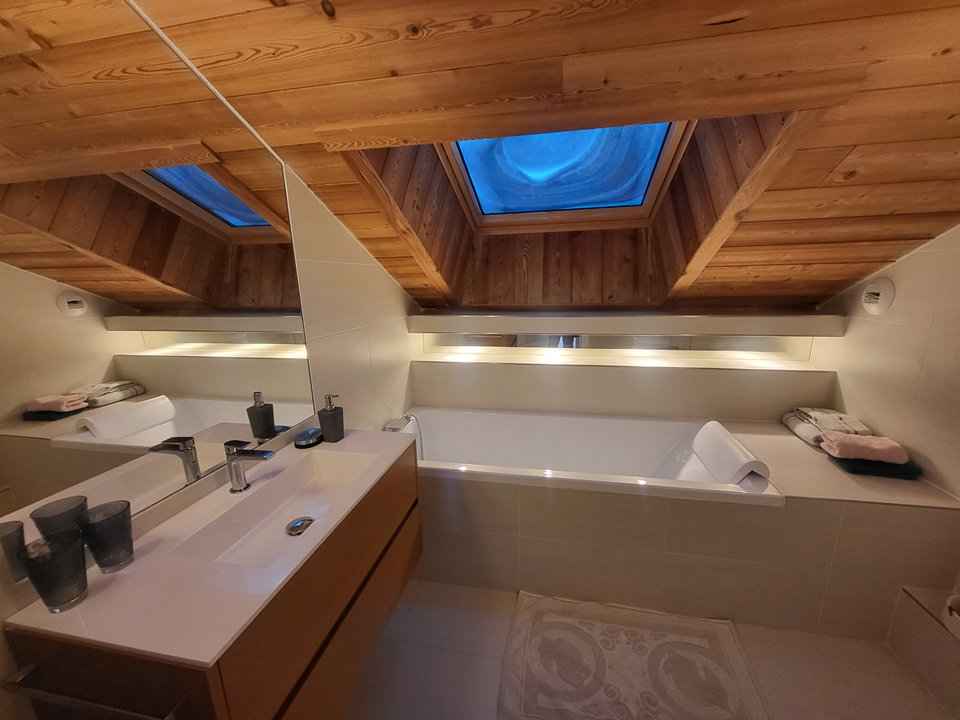 - La salle de bain est équipée d’une grande baignoire et d’un radiateur sèche serviette, d’un sèche-cheveux et d’un WC.