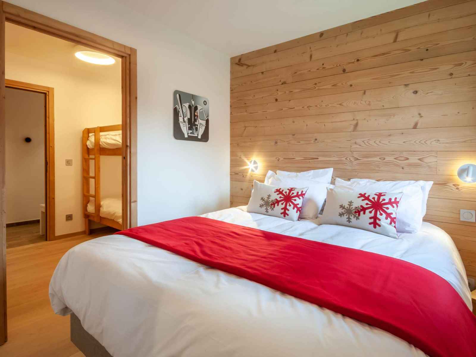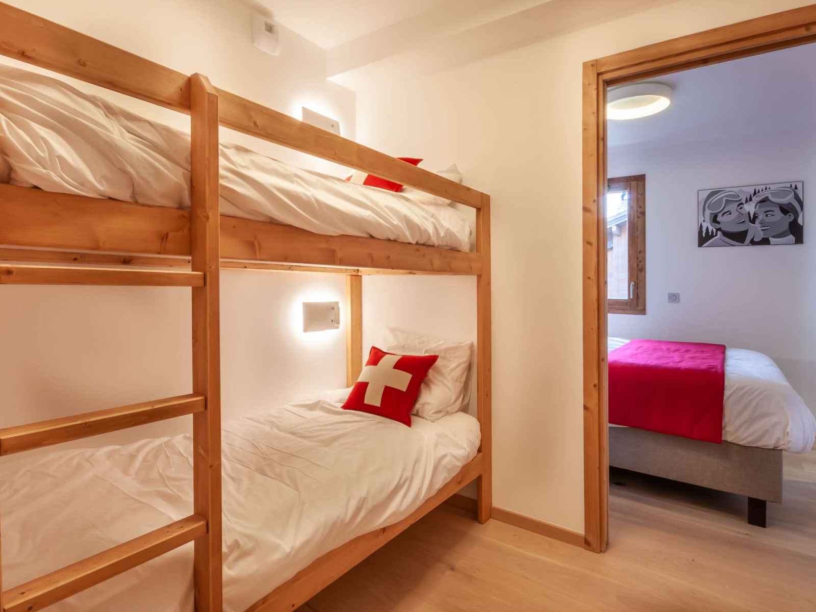 lits superposés, rangement, deux lits simples pouvant être rapprochés en lit double, TV, salle de douche en-suite avec WC