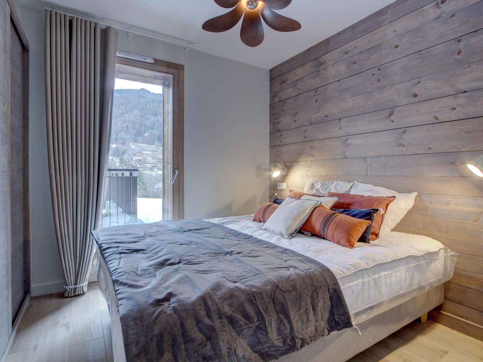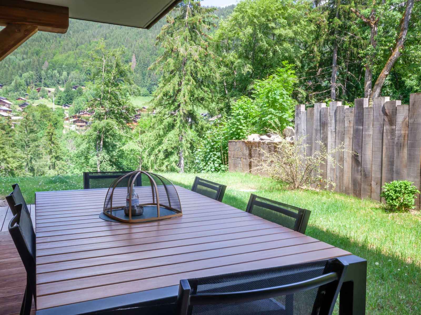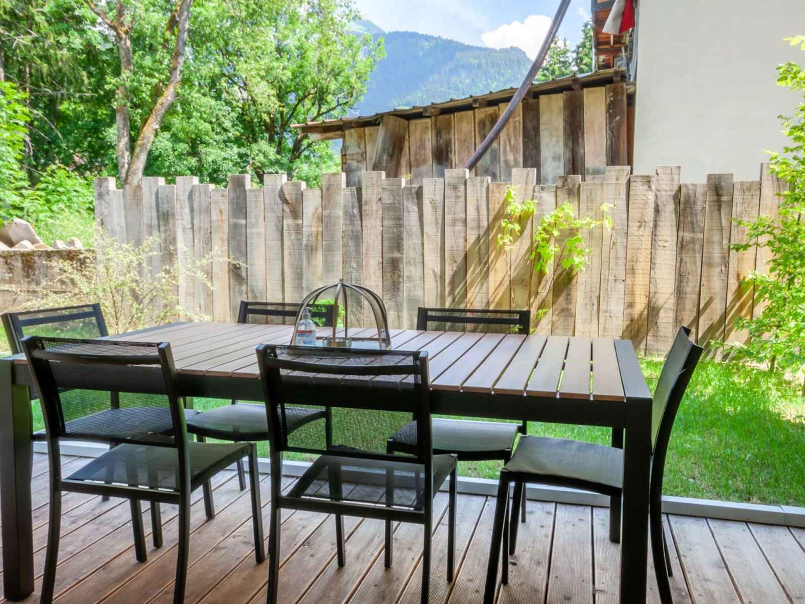 - Pièce à vivre avec coin cuisine ouverte sur le salon/séjour, terrasse avec jardin, vue dégagée sur les montagnes