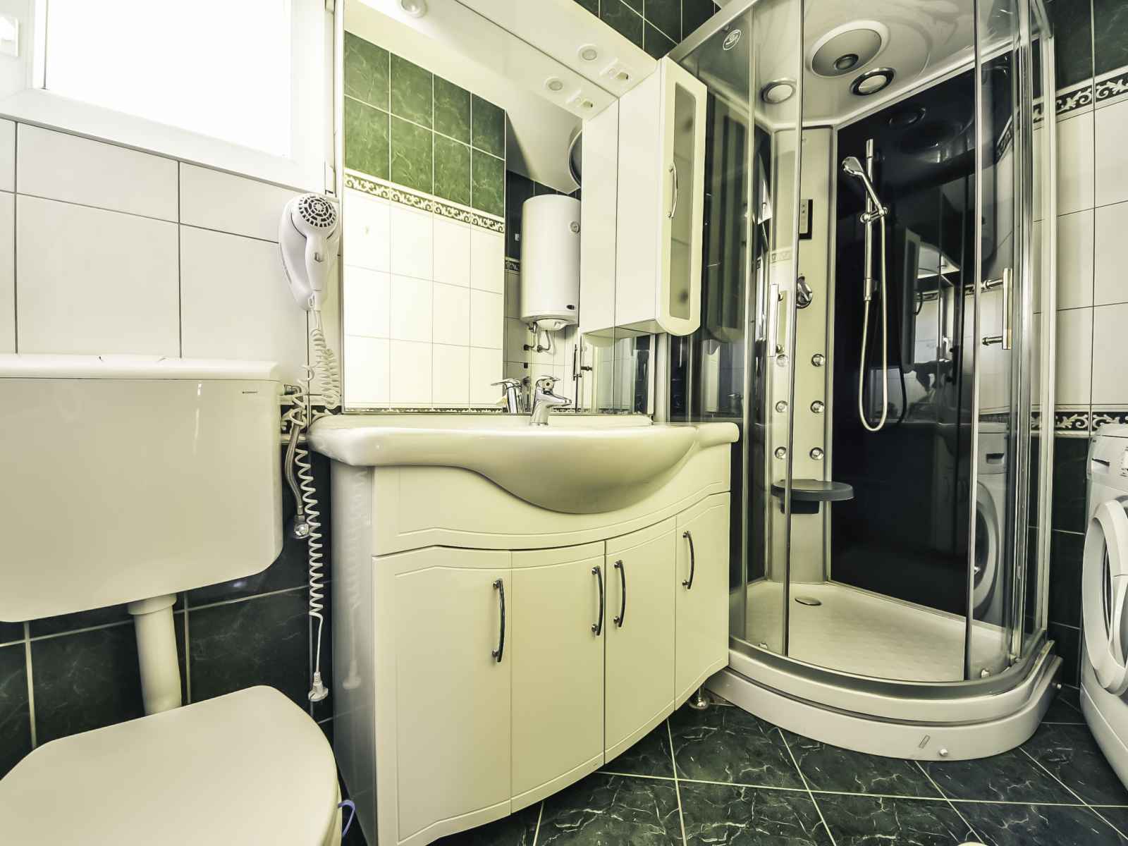 Douche/WC. Pas de chauffage. Terrasse 25 m2, couverte. Meubles de terrasse. Vue sur la mer. A disposition: lave-linge. Internet (Connexion WIFI, gratuit). Place de parking (cloturée).