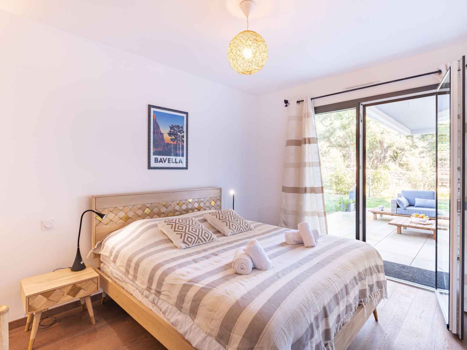 longueur 190 cm). Sortie sur le jardin. Cuisine ouverte (4 plaques de cuisson, four, lave-vaisselle, grille-pain, bouilloire électrique, micro-ondes, cafetière électrique, Capsules pour machine à café (Nespresso) (NON INCLUSES)). Douche/WC, WC séparé. Chauffage électrique, air-conditionné. 2 terrasses 20 m2, petit jardinet 40 m2. Meubles de terrasse, barbecue électrique, chaises longues (4). A disposition: lave-linge. Internet (Connexion WIFI, gratuit). Place de parking No 772/773 (2 Voitures). Veuillez noter: logement côté parking. Logement non-fumeur. Détecteur de fumée. 2A24700237487