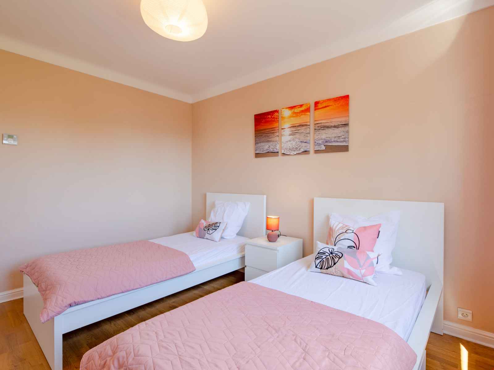 Apt 4 pièces 115 m2 au 1er étage, situation sud. spacieux et clair, aménagement agréable: grand séjour/salle à manger avec tv (écran plat). sortie sur le balcon. 1 chambre avec dressing avec 1 grand-lit (1 x 140 cm, longueur 200 cm). sortie sur le balcon. 1 chambre avec dressing avec 2 lits (90 cm, longueur 200 cm). 1 chambre avec 1