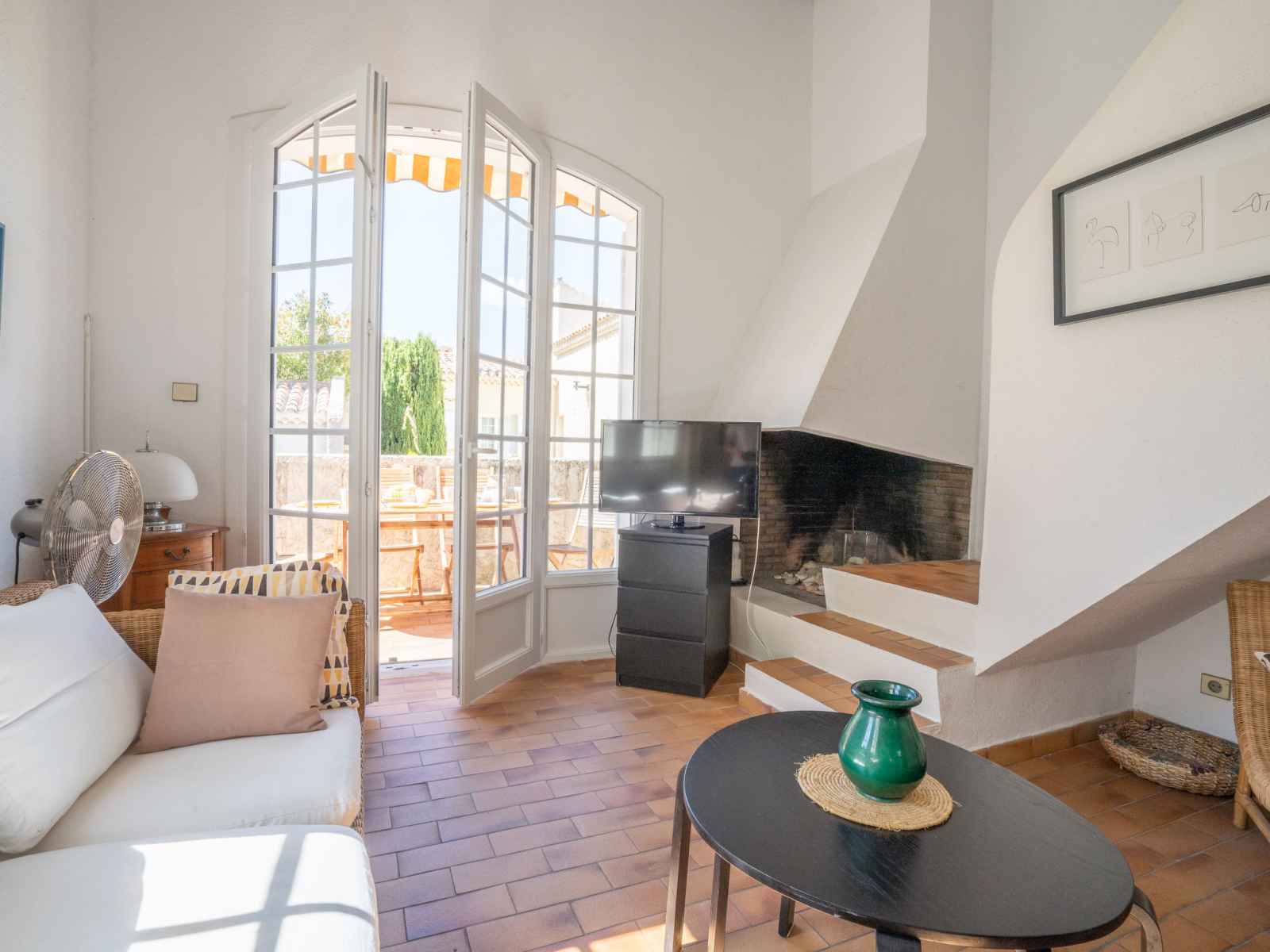 Apt 4 pièces 75 m2 sur 2 niveaux, rez-de-chaussée surélevé. aménagement confortable et agréable: séjour/salle à manger avec tv. sortie sur la terrasse. 1 chambre avec 1 grand-lit (1 x 140 cm, longueur 200 cm). cuisine ouverte (four, lave-vaisselle, 3 plaques vitrocéramiques, grille-pain, bouilloire électrique, micro-ondes, congélateur,