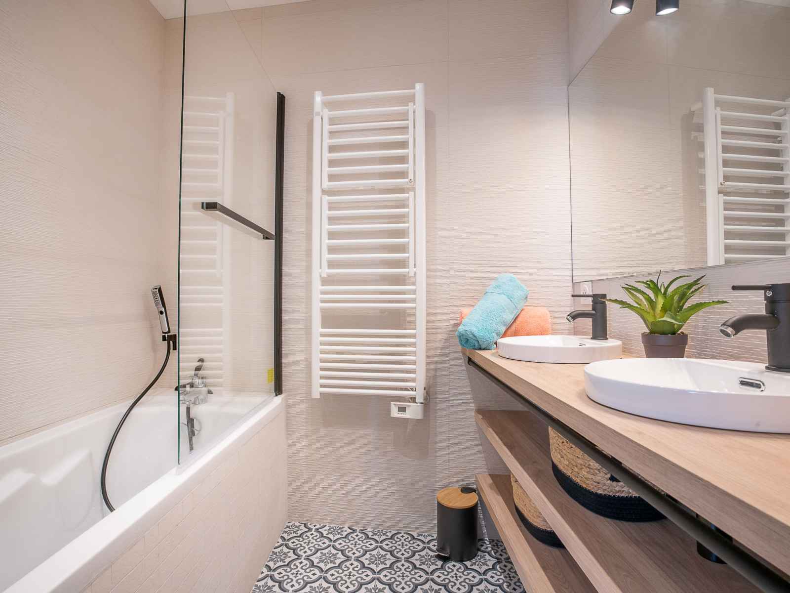 Apt 4 pièces 110 m2 sur 2 niveaux au 1er étage. spacieux et clair, complètement rénové en 2022, aménagement confortable et moderne: grand séjour/salle à manger avec 1 divan-lit double (1 x 140 cm, longueur 190 cm), tv (écran plat), volet roulant électrique. grande cuisine ouverte (four, lave-vaisselle, 3 plaques à induction,