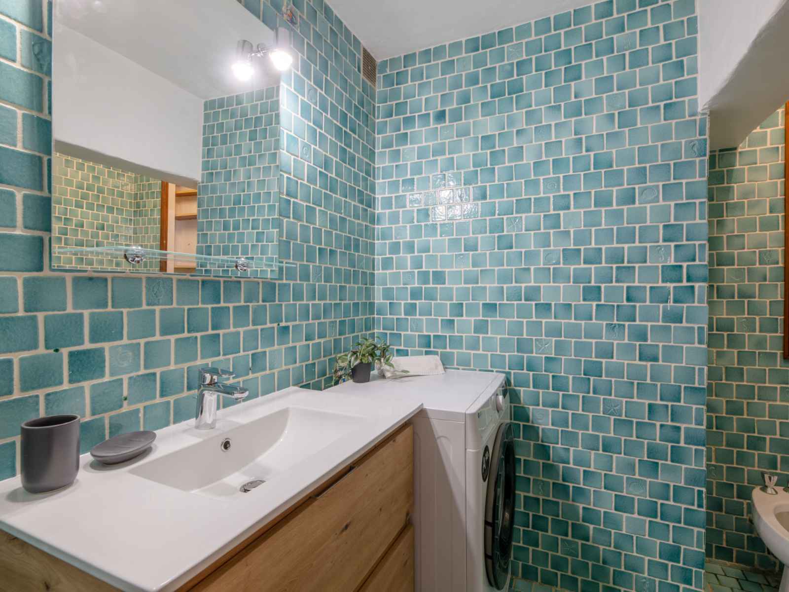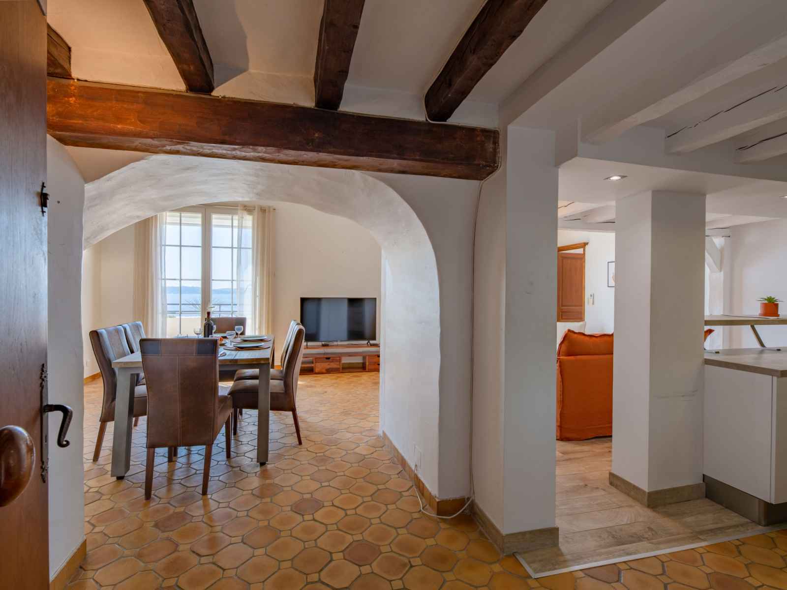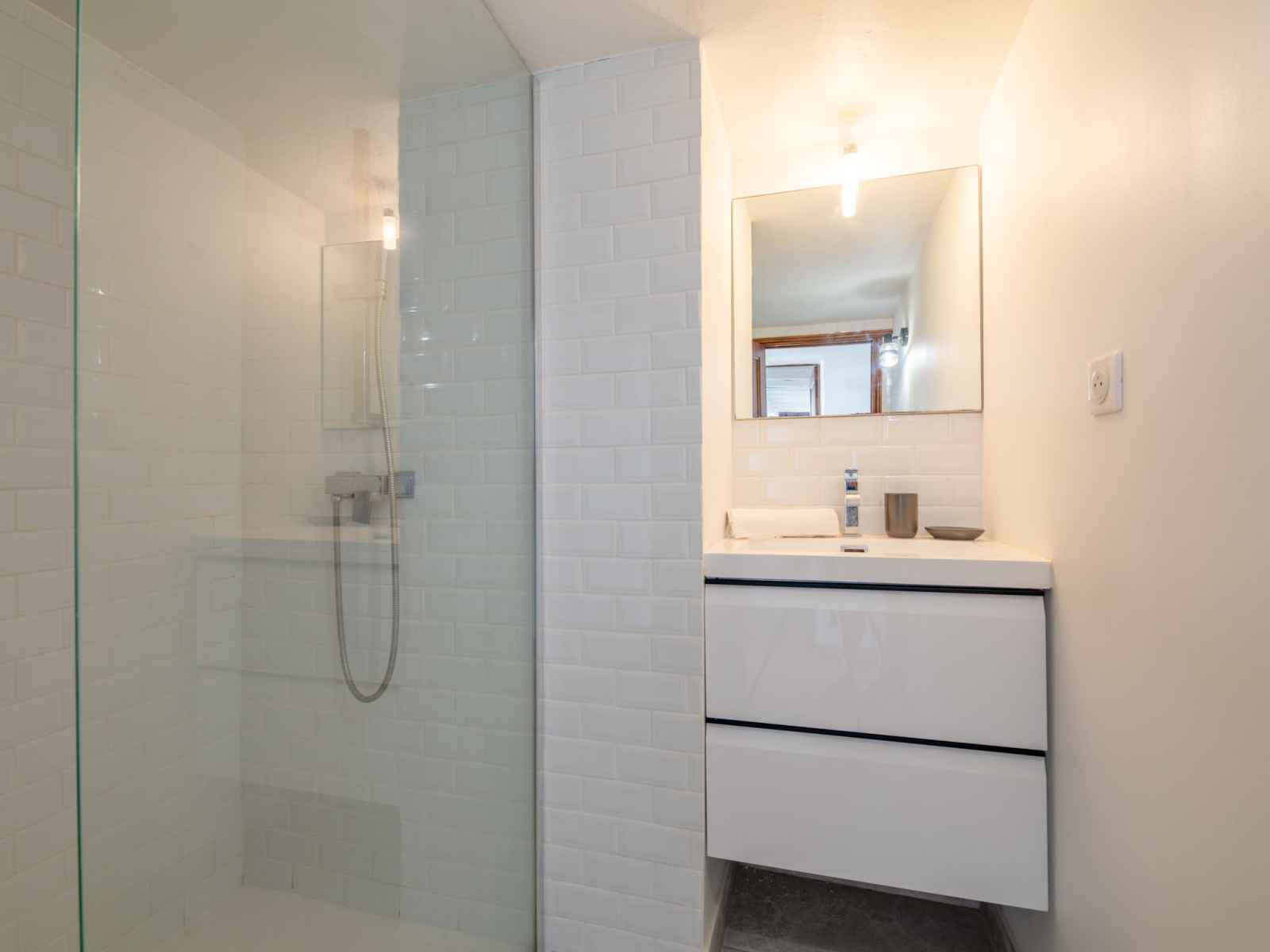 Appartement sur 2 niveaux 3 pièces 114 m2 au 5ème étage, situation sud. aménagement de style: grand séjour/salle à manger avec tv (écran plat). sortie sur la terrasse. 1 chambre orientée sud avec 1 grand-lit (1 x 180 cm, longueur 200 cm). sortie sur la terrasse. 1 chambre orientée nord avec 1 grand-lit (1 x 160 cm, longueur 200 cm).
