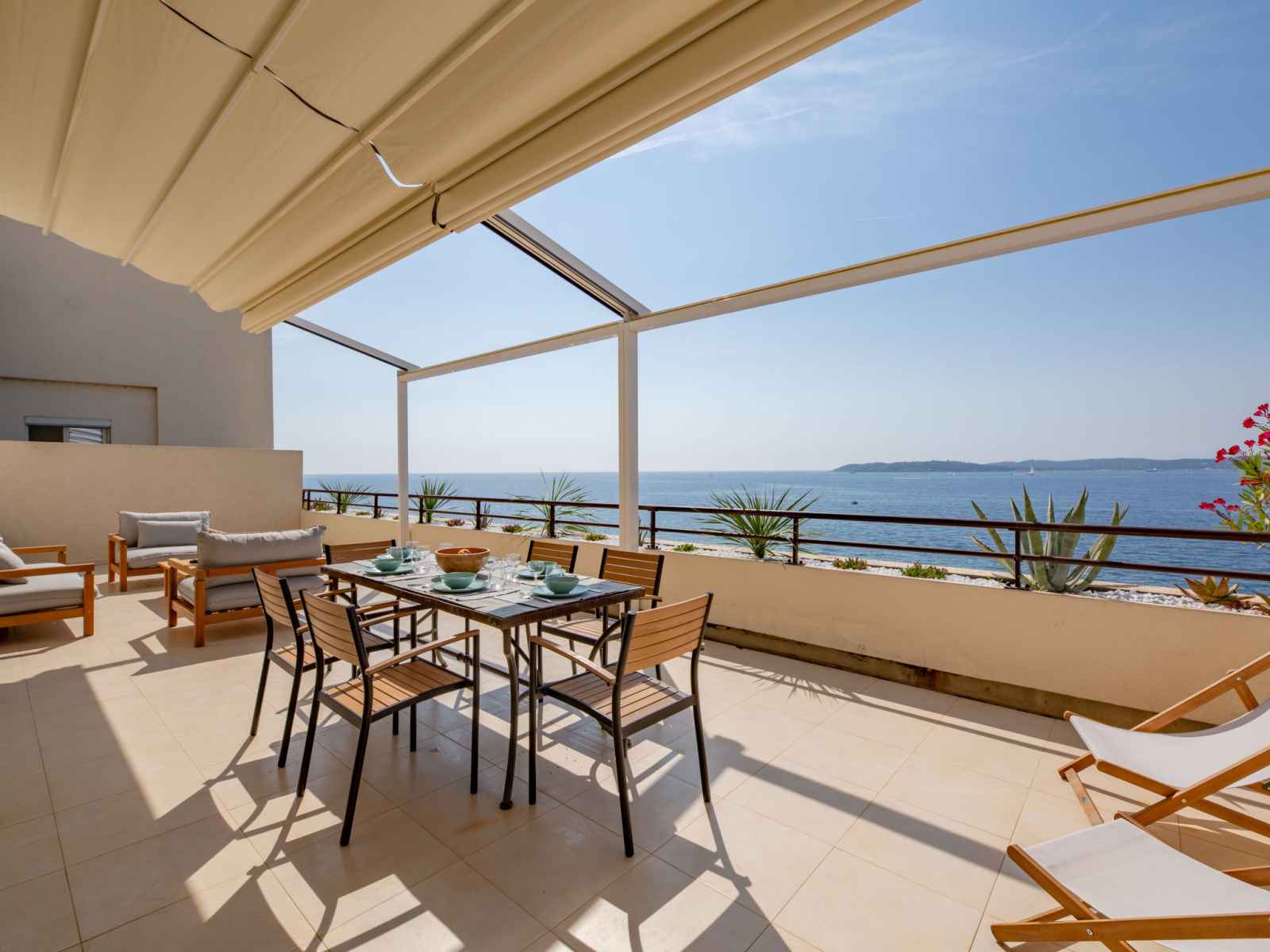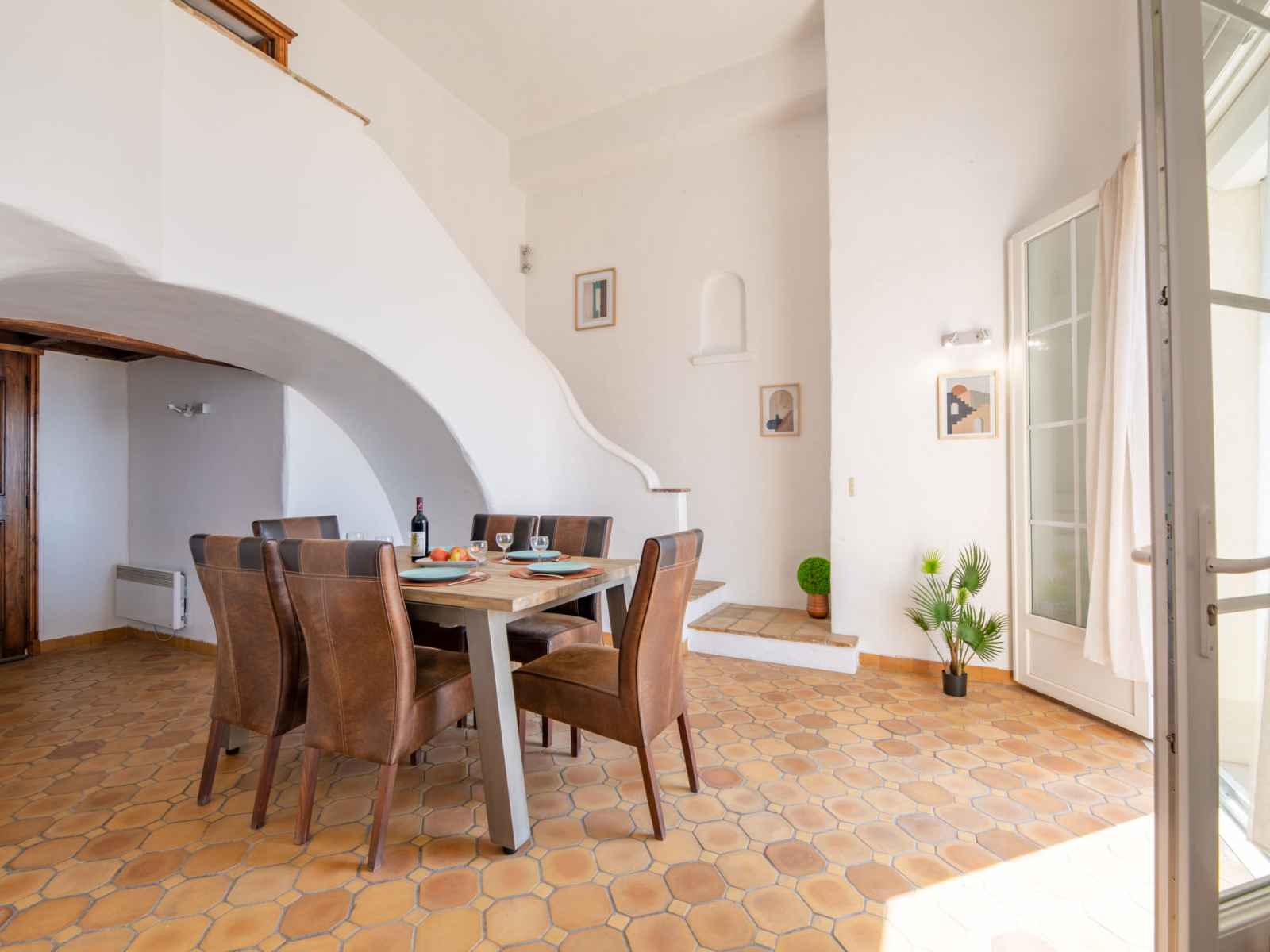 Cuisine ouverte (four, lave-vaisselle, 4 plaques vitrocéramiques, grille-pain, bouilloire électrique, micro-ondes, congélateur, cafetière électrique). Douche, WC séparé. Air-conditionné, chauffage à air chaud. À l'étage supérieur: 1 chambre, sans fenêtre avec 1 grand-lit (1 x 160 cm, longueur 200 cm), douche/bidet/WC. Grande terrasse 50 m2, situation sud. Meubles de terrasse. Vue panoramique sur la mer. A disposition: lave-linge, fer à repasser, sèche-cheveux. Internet (Connexion WIFI, en sus). Place de parking à 750 m. Veuillez noter: logement non-fumeur parking pour 1 petite voiture. Maximum 1 animal/ chien autorisé. Détecteur de fumée. Annonce d'un particulier (art 155, IV du CGI). 83115005138HT