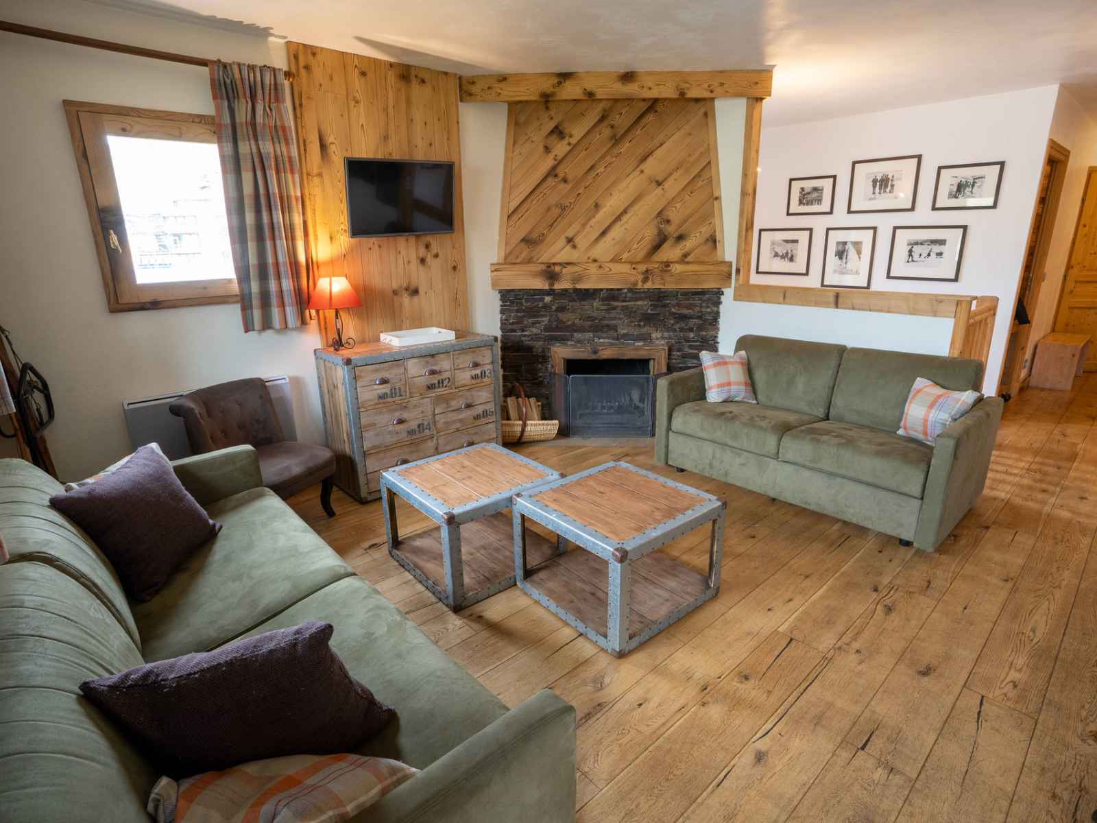 salon: télévision, cheminée, canapé convertible (en lit double).
