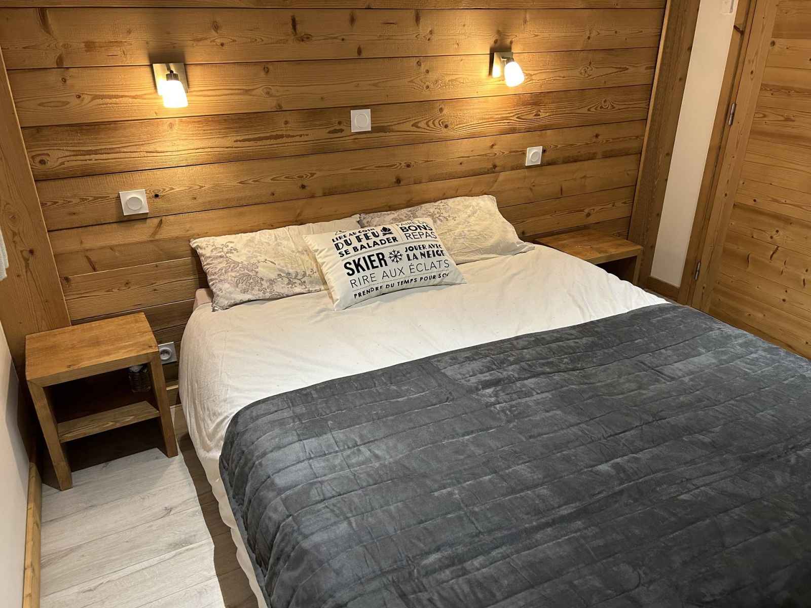 couettes EQUIPEMENTS : Pièce de vie (Niv +2/ 45m²) : - Coin cuisine : four, micro-ondes, lave-vaisselle, réfrigérateur/congélateur, plaque induction (4 foyers) - Coin salon : télévision, lecteur DVD, enceinte connectée, Wifi gratuit, poêle à bois (bois fournis) Salle d'eau 1 (Niv +1) : lavabo, douche, sèche-cheveux et WC. Salle d’eau 2 (Niv +1) : lavabo et douche. 2 WC indépendants (Niv +1 et +2) Buanderie (Niv 0) : lave-linge et sèche-linge SERVICES/OBSERVATIONS : Animaux refusés. Linge de lit et linge de toilette fournis. Ménage non inclus. Casier à skis. Terrasse (15m²/ Sud) avec salon de jardin et barbecue. Parking privé pour 2 voitures + Garage pour 1 voiture.