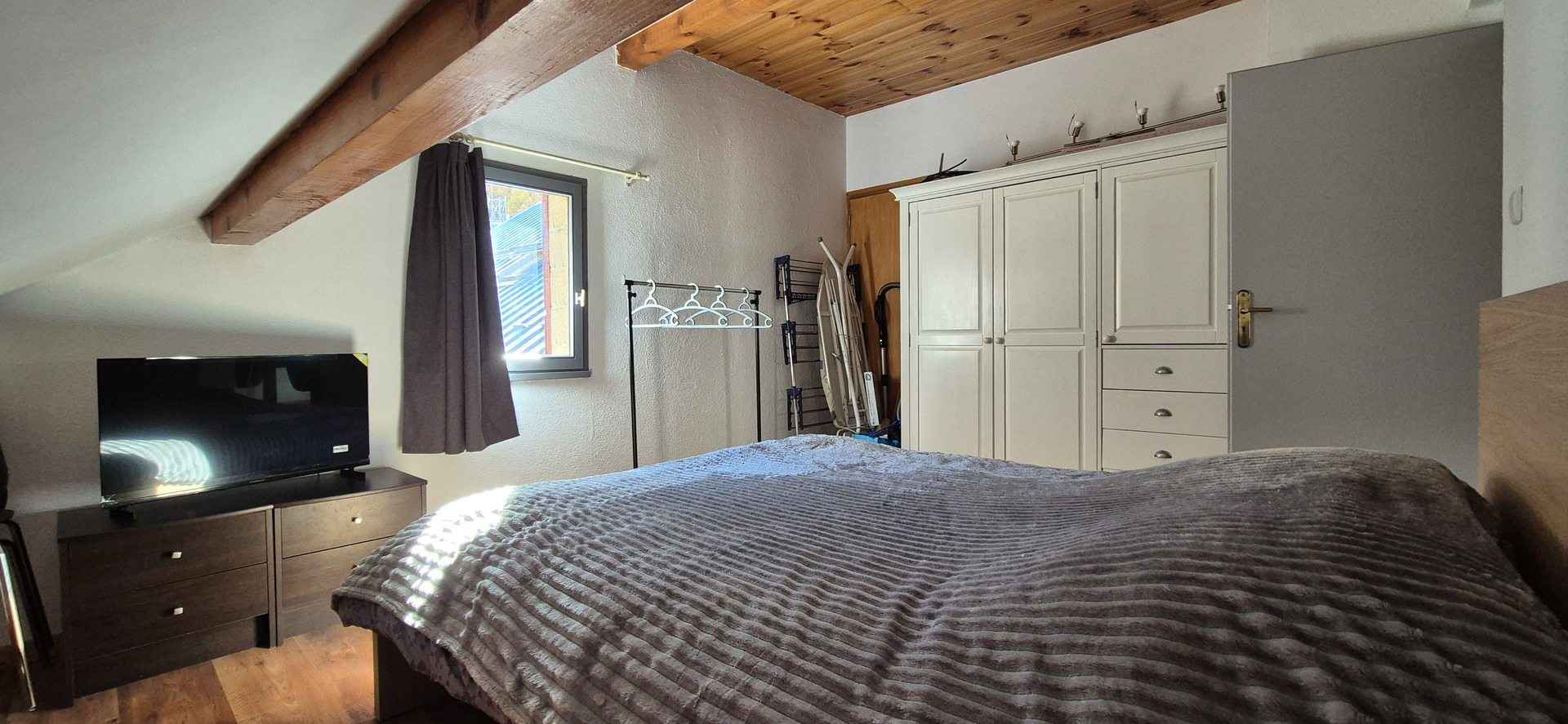 salon (Nord) : télévision. Salle d'eau : lavabo, douche, sèche-cheveux. WC indépendant. SERVICES/OBSERVATIONS : Animaux refusés. Linge de lit et de toilette non fournis. Ménage final non inclus. Casier à skis. Pas de balcon. Pas de parking, parking public à proximité. Appartement sous les toits 46m² + m² supplémentaire