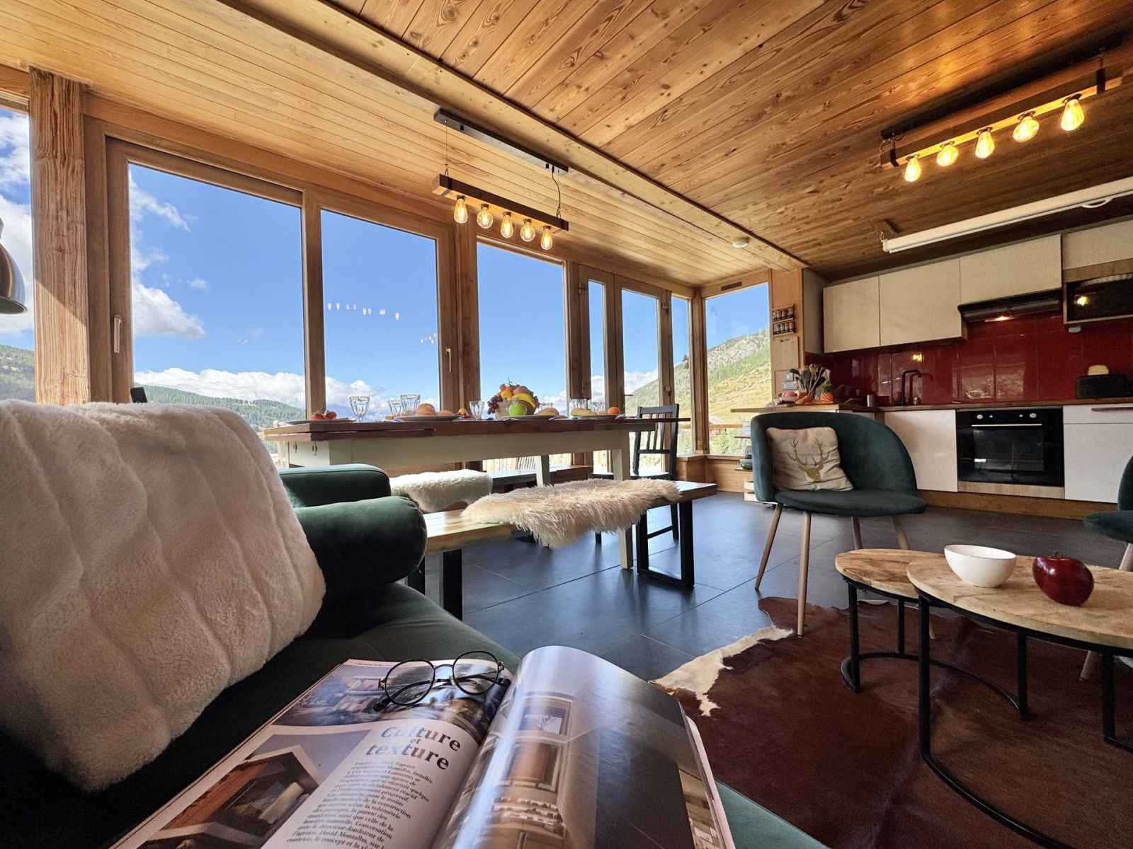 l’appartement bénéficie d’une exposition optimale, permettant de profiter pleinement de la lumière naturelle et des panoramas environnants. il est situé dans un environnement calme et préservé, au cœur de la nature, tout en restant proche des commodités et des activités de montagne.