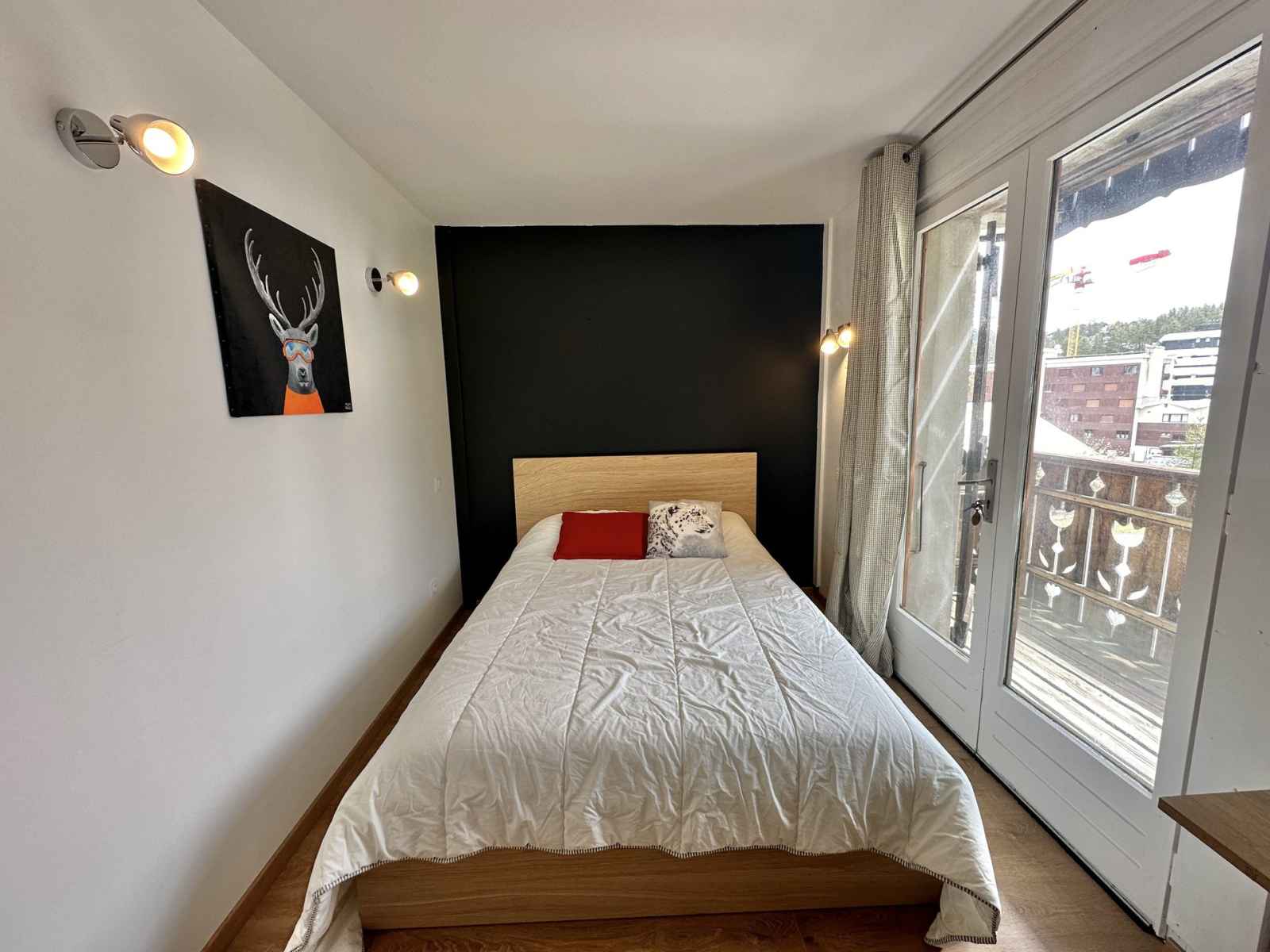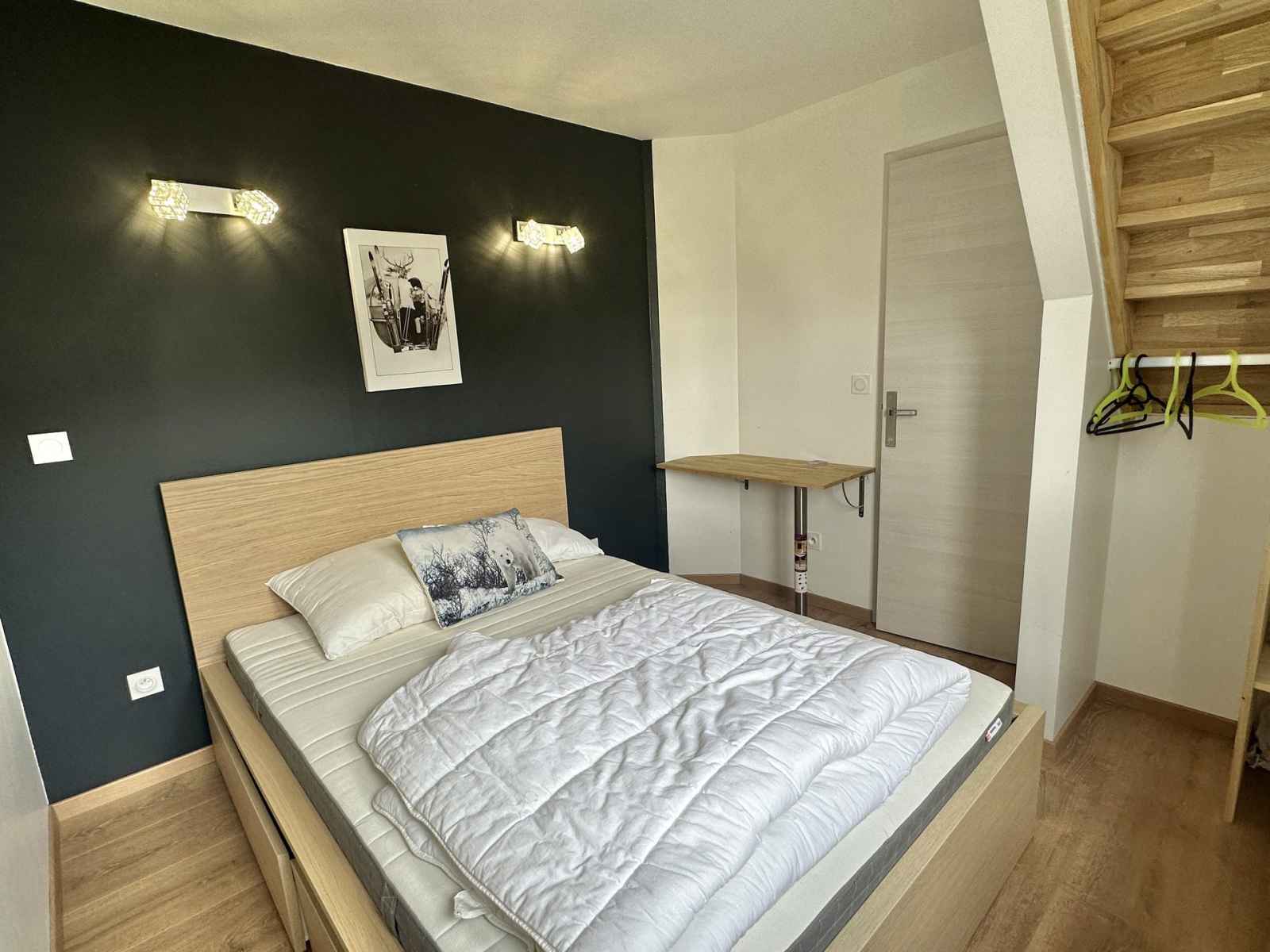 d'un grand séjour, cuisine ouverte sur un balcon exposition SUD vue sur la montagne. La cuisine est quant à elle entièrement équipée, une machine à café nespresso, un appareil à raclette, un appareil à fondue, un lave-vaisselle, sodastream, un four combi, un frigo, des plaques à induction, un grille pain. En ce qui concerne les couchages, il y a une chambre parentale avec un lit double ainsi que sa salle d'eau au niveau du premier éage et à l'étage inférieur nous avons deux autres chambres double. Une salle d'eau commune aux deux chambres du bas est presente au niveau de cet étage. L'appartement possède deux WC indépendants. Décoré avec gout cet appartement est fait pour vous. Animaux interdits. Toutes nos locations sont strictement NON-FUMEUR. L’appartement dispose d’un casier à skis. Il n’y a pas de place de parking attitrée, mais le stationnement est gratuit dans toute la station.