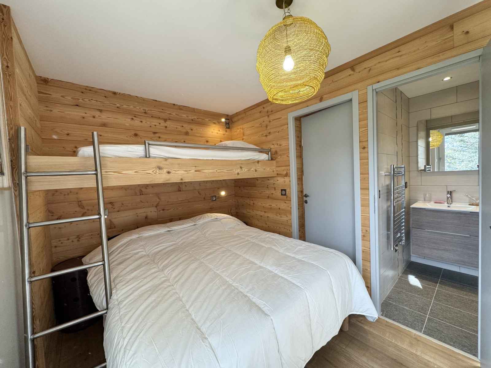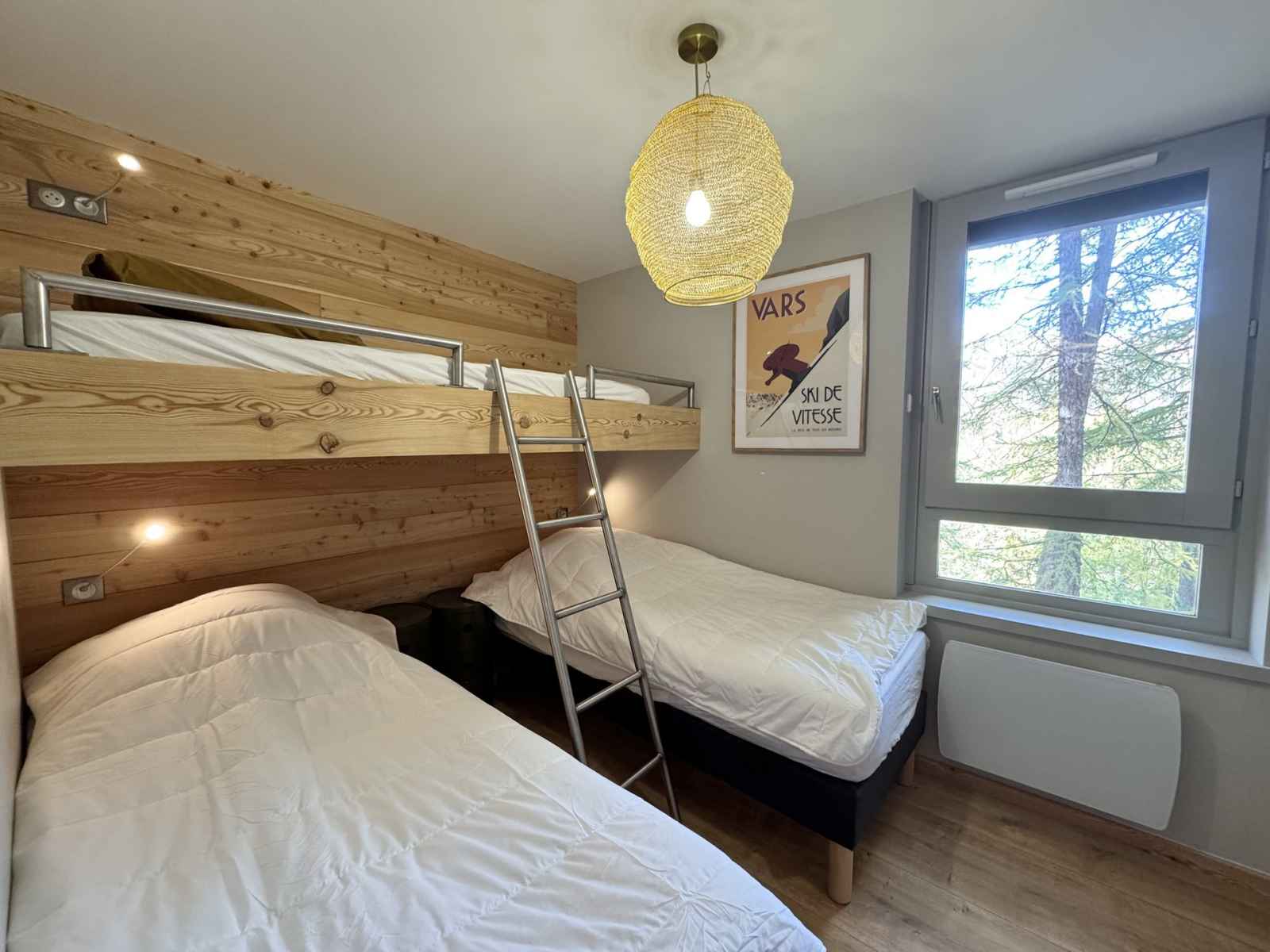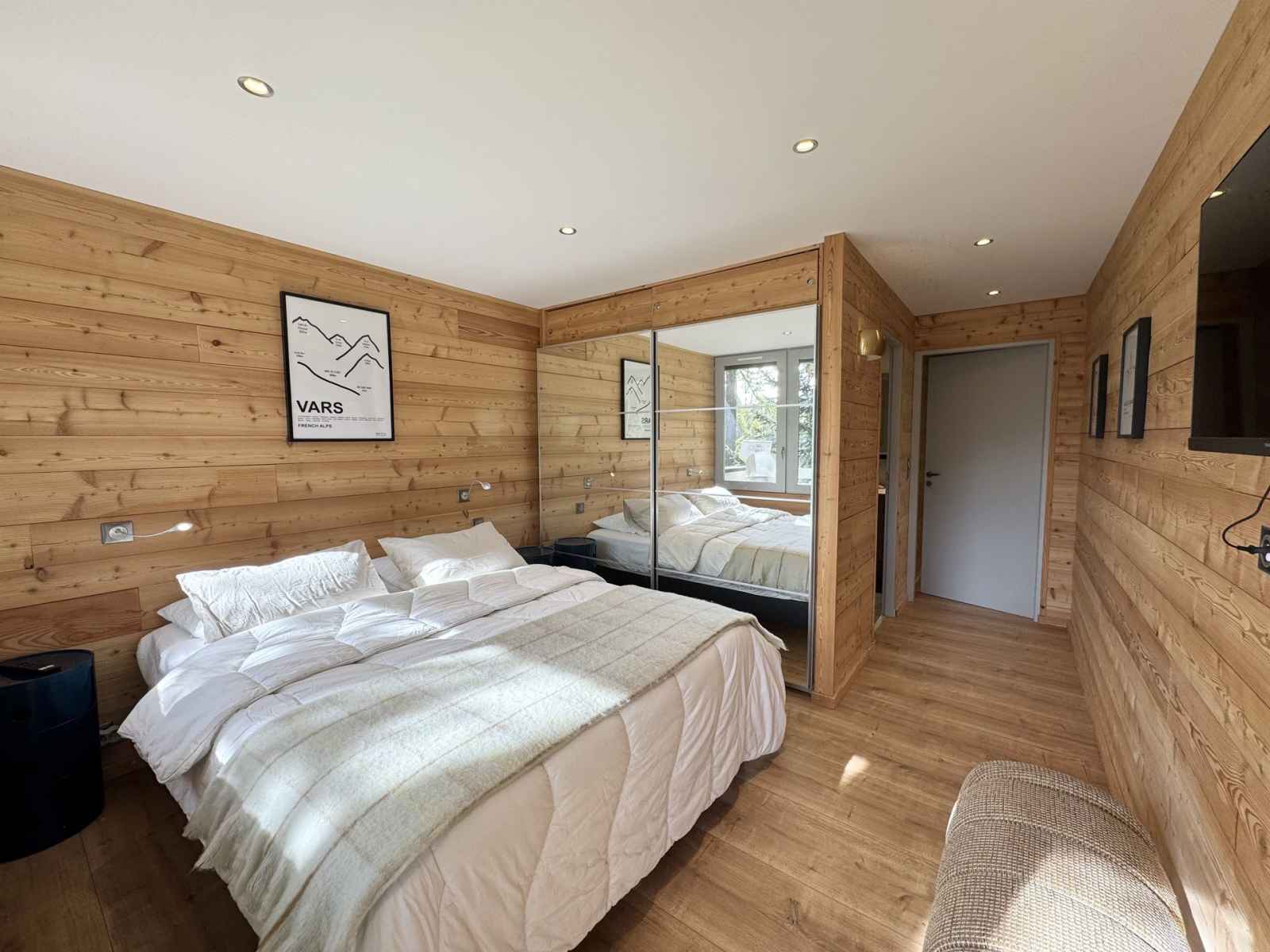 ambiance chalet et son environnement privilégié au cœur des mélèzes Depuis la terrasse ouverte sur la forêt, un petit portillon vous permet de partir skis aux pieds au milieu des arbres pour rejoindre les pistes, une expérience unique réservée aux skieurs de niveau moyen à bon L’appartement comprend une chambre double avec salle d’eau privative et WC, une chambre avec deux lits simples au sol et un lit simple en hauteur, ainsi qu’une troisième chambre avec deux lits simples rapprochables et un lit simple en hauteur disposant également de sa salle d’eau privative Une troisième salle d’eau et un WC indépendant complètent le bien La cuisine moderne et entièrement équipée comprend un four traditionnel, un micro-ondes, un réfrigérateur, un lave-vaisselle, une machine à café Nespresso, une bouilloire et un grille-pain Smeg L’appartement dispose aussi d’un lave-linge séchant, d’une télévision, d’une machine à raclette et de tout le confort nécessaire pour un séjour convivial à la montagne Vous profiterez d’une grande terrasse ouverte sur la forêt, lieu idéal pour laisser les enfants jouer, construire des cabanes ou faire des bonhommes de neige Un casiers à skis dans la résidence ainsi qu’un deuxième casier directement sur la terrasse renforcent l’esprit chalet de montagne Un garage privatif et une place de parking couverte complètent ce bien d’exception Idéalement situé, l’appartement permet de tout faire à pied pendant les vacances, entre nature, pistes et centre station Un véritable cocon familial, entre forêt et montagne, pour des vacances inoubliables à Vars Les Claux