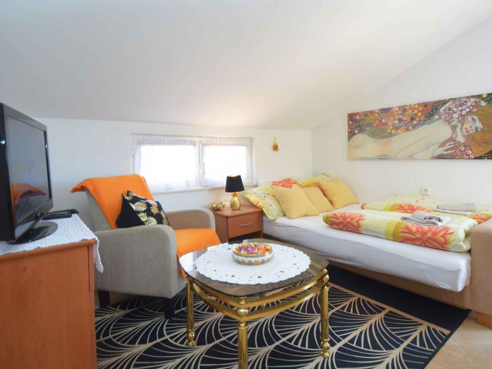 Apt 4 pièces 89 m2 au 2ème étage, situation sud. aménagement agréable et plaisant: séjour/salle à manger avec 1 divan-lit double (140 cm, longueur 200 cm), coin-cuisine et tv (satellite) (écran plat), air-conditionné. 1 chambre hauteur plafond 155 - 300 cm avec 1 grand-lit (140 cm, longueur 200 cm). séjour/salle à manger hauteur plafond