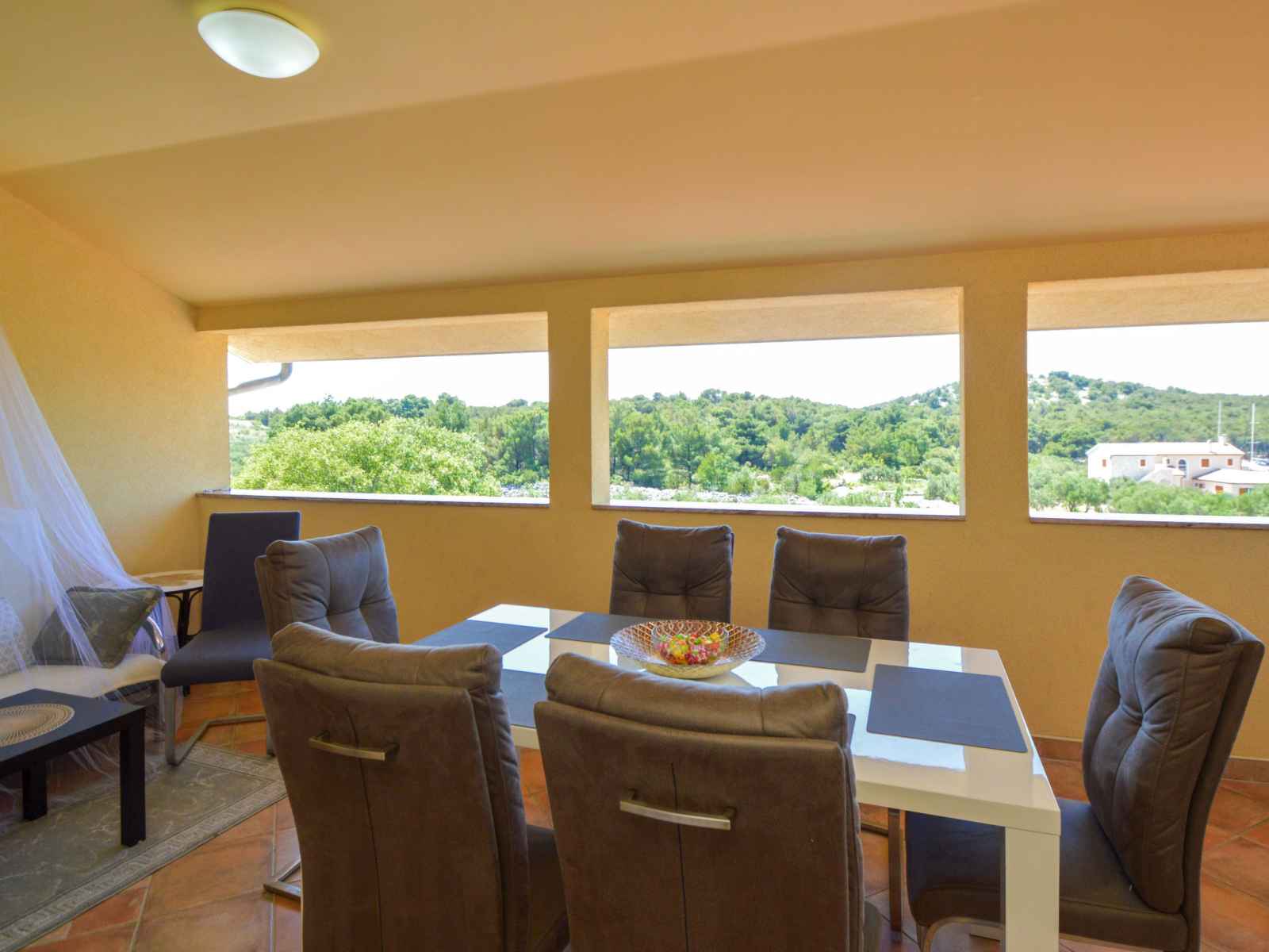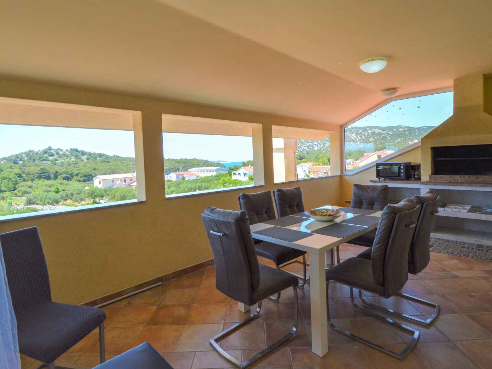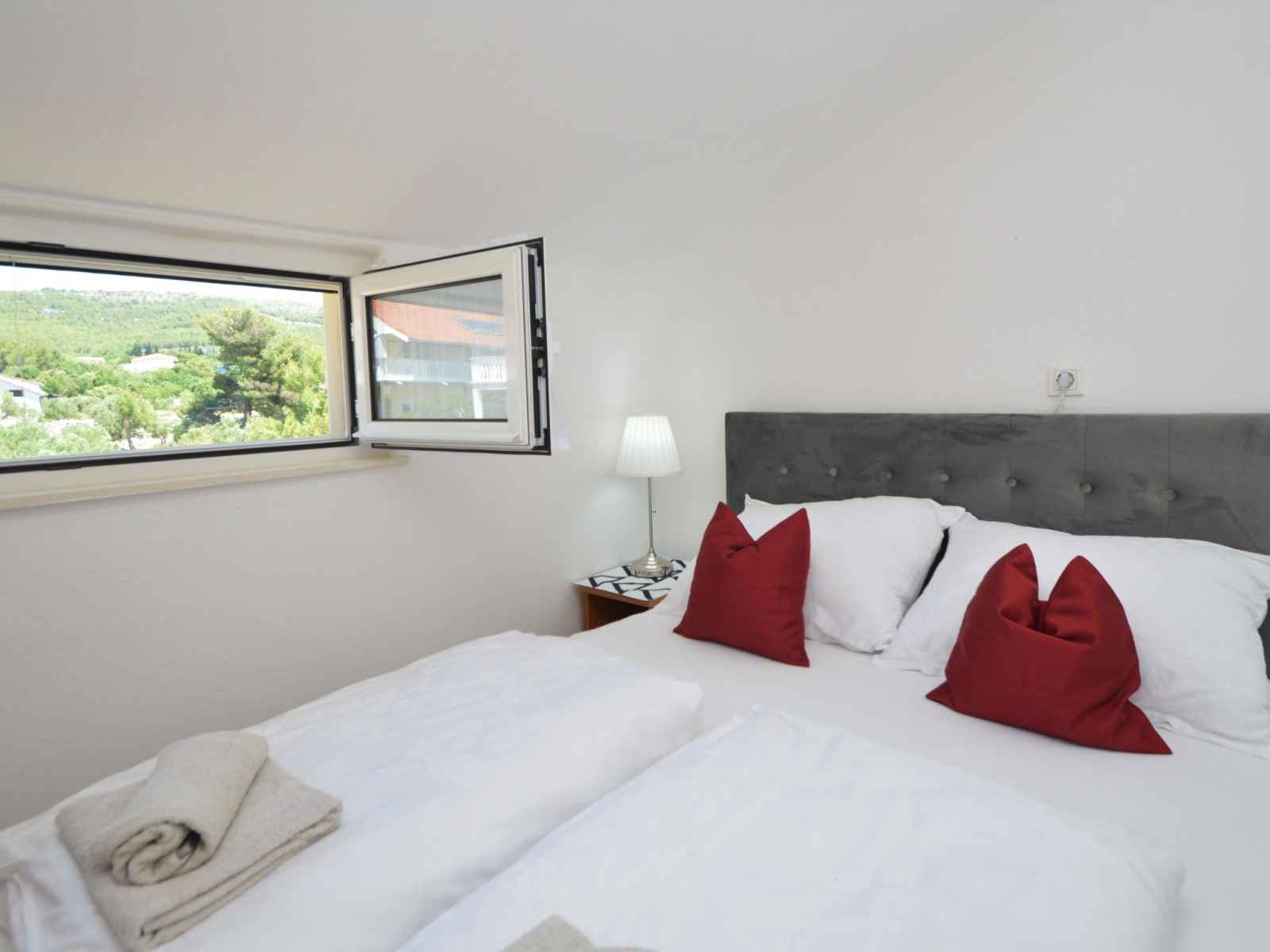 145 - 300 cm avec 1 divan-lit (140 cm, longueur 200 cm), TV (satellite) (écran plat), air-conditionné. Sortie sur le balcon. 1 chambre hauteur plafond 145 - 300 cm avec 1 grand-lit (160 cm, longueur 200 cm). Cuisine ouverte (lave-vaisselle, 4 plaques vitrocéramiques, bouilloire électrique, micro-ondes, congélateur, cafetière électrique). 2 douches/bidet/WC. Pas de chauffage. Balcon 4 m2, terrasse 30 m2, couverte. Meubles de terrasse, barbecue. Vue sur la mer et la piscine. A disposition: Internet (Connexion WIFI, gratuit). L'unité se compose de 2 appartements séparés, loués comme une seule unité, occupant le deuxième étage. Chaque appartement avec salon/salle à manger, cuisine ouverte et chambre. Idéal pour 2 familles passant des vacances ensemble.